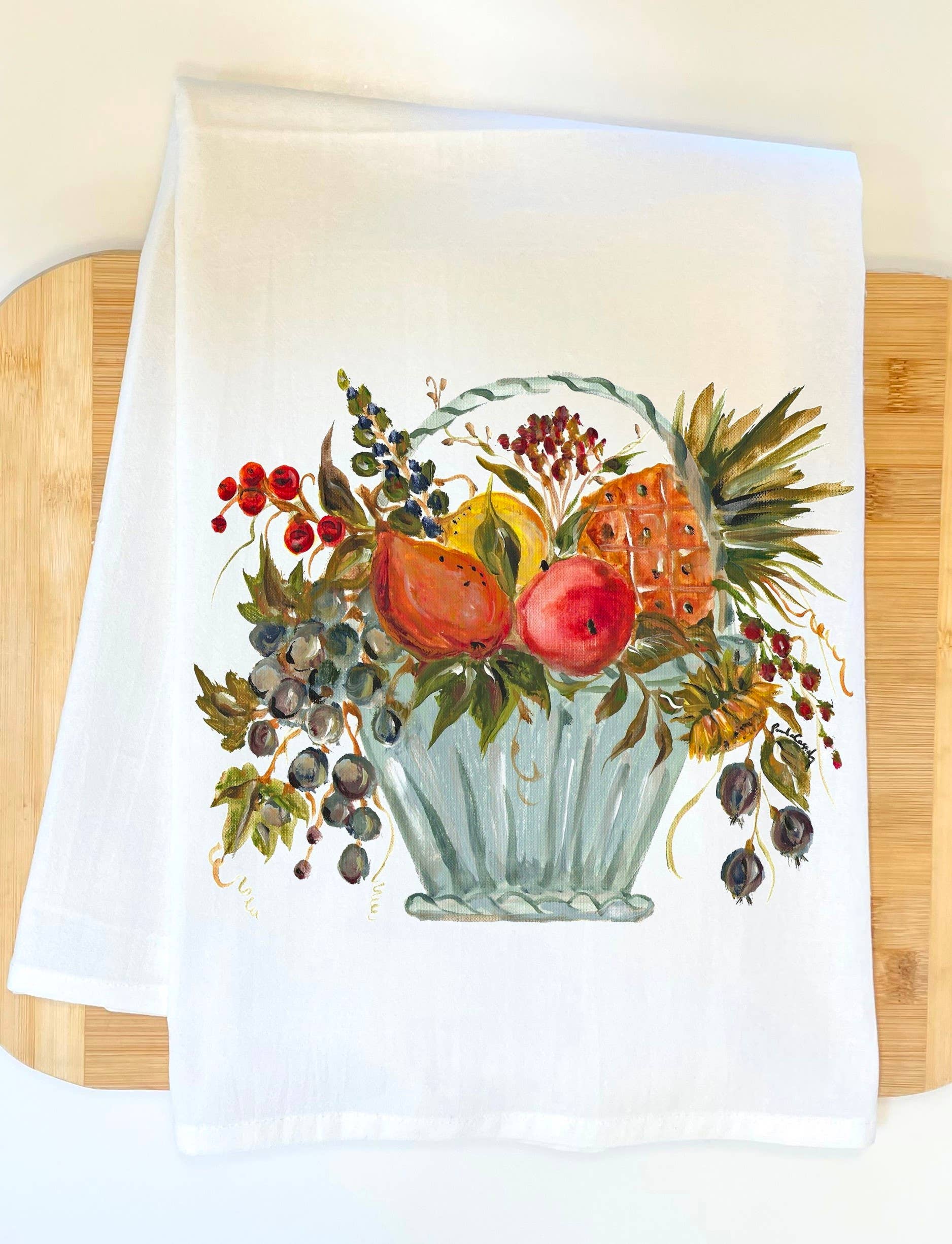 Wholesale Pineapple Kitchen Towel, Handprinted Tea Towel, Tropical