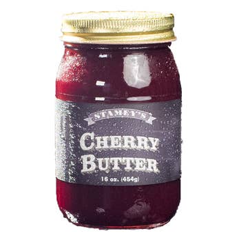 Michigan Cherry Spread A time-tested cherry tradition that can turn just about any food into a taste festival for your mouth. Generations of loyal customers continue to acknowledge that our Michigan cherry spread is the best in its category, and we agree. Try it on toast, muffins, biscuits and bagels – or as a scrumptious glaze on poultry. Get a taste of why people have been hooked for generations. Ingredients: Sugar, tart cherries, tapioca syrup, filtered water, cherry juice concentrate, lime juice concentrate, pectin, cinnamon. MAY CONTAIN PITS