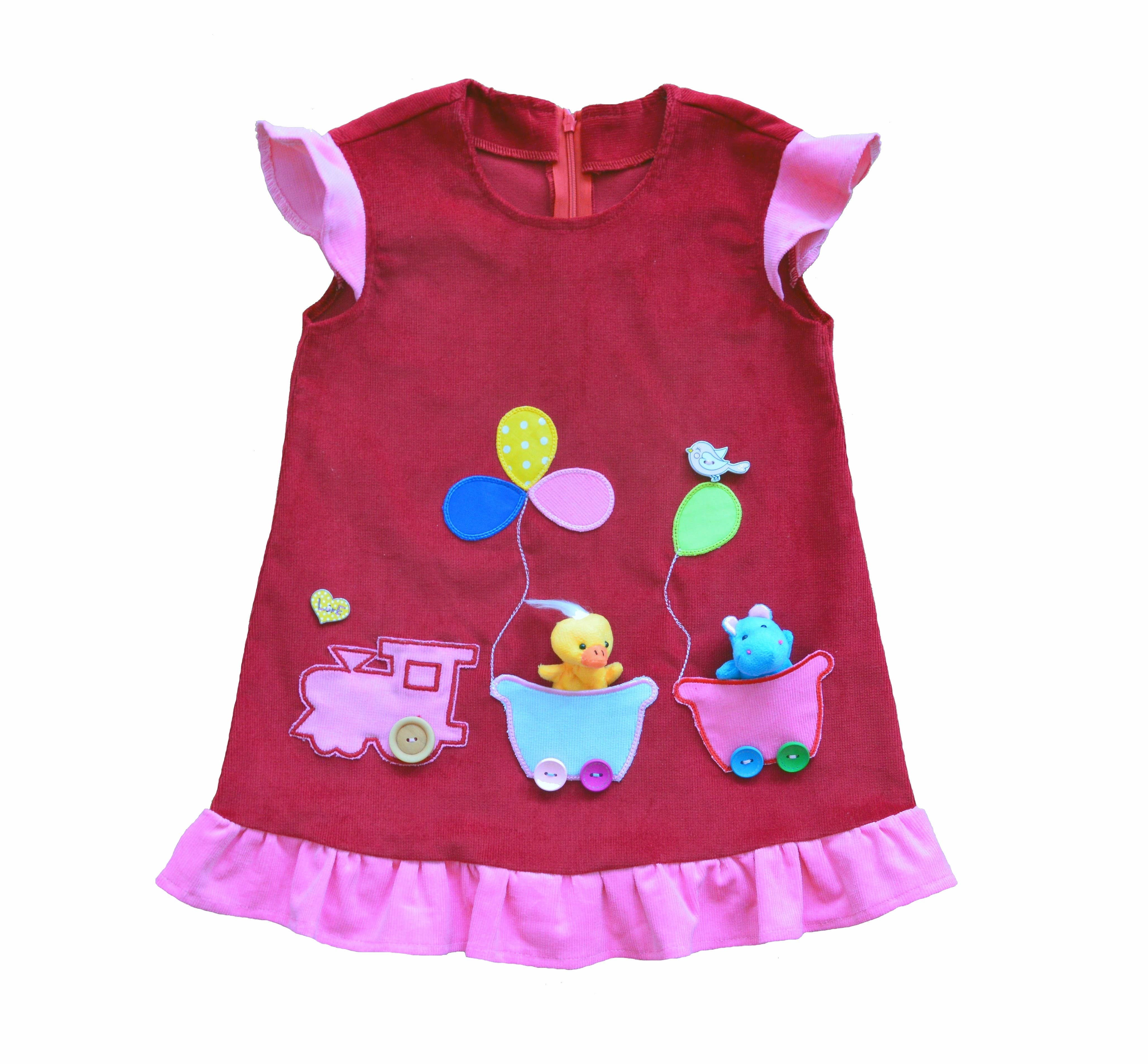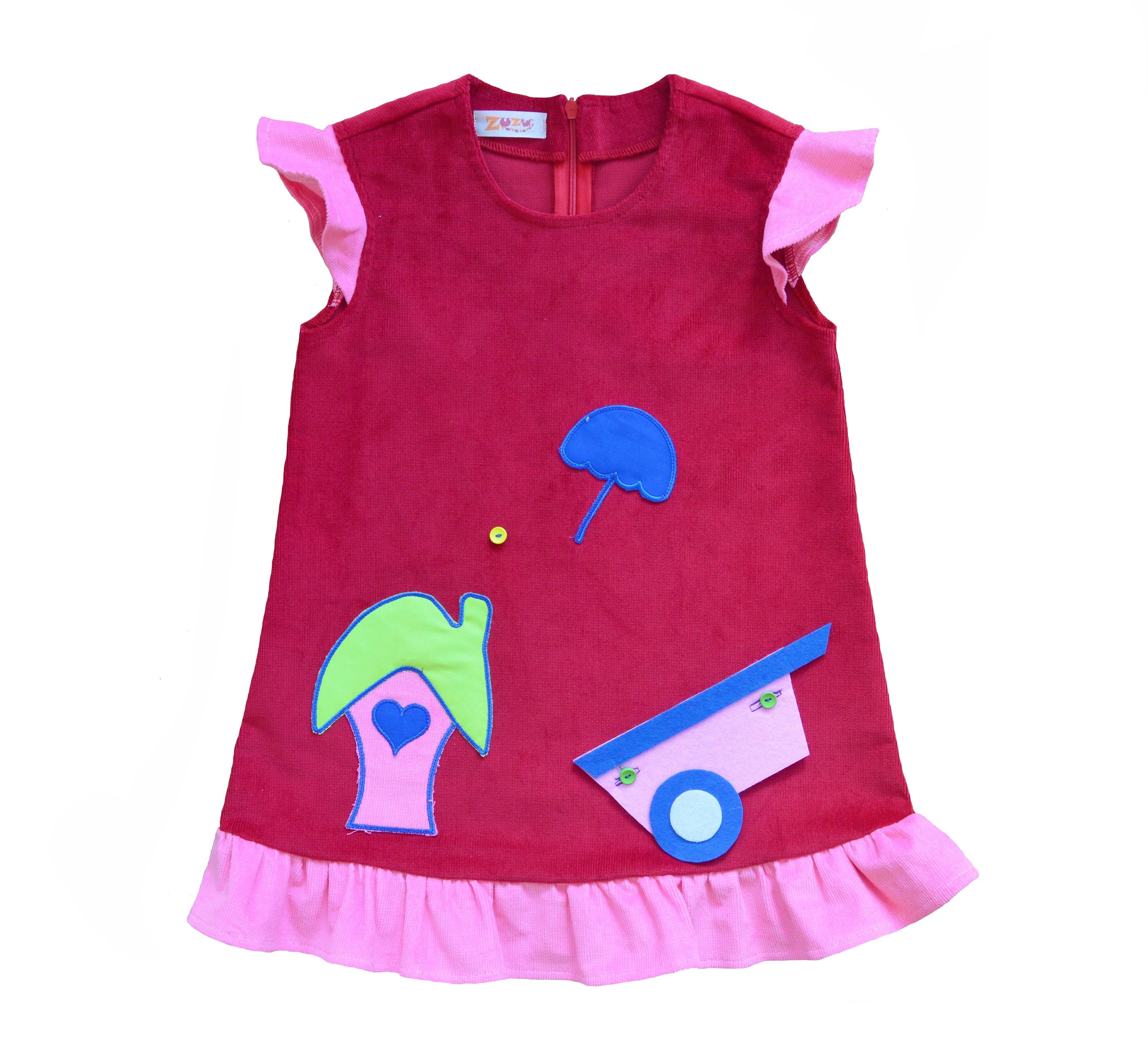 Handmade sleeveless dress /tunic, with removable elements. Suitable for spring, summer, and autumn. Designed to be played with, and to improve fine motor skills, eye-hand coordination and creative thinking of preschool children. Removable elements: four removable applications (cactus, dinosaurs, bird). Material: cotton corduroy. 42cm x32 cm.