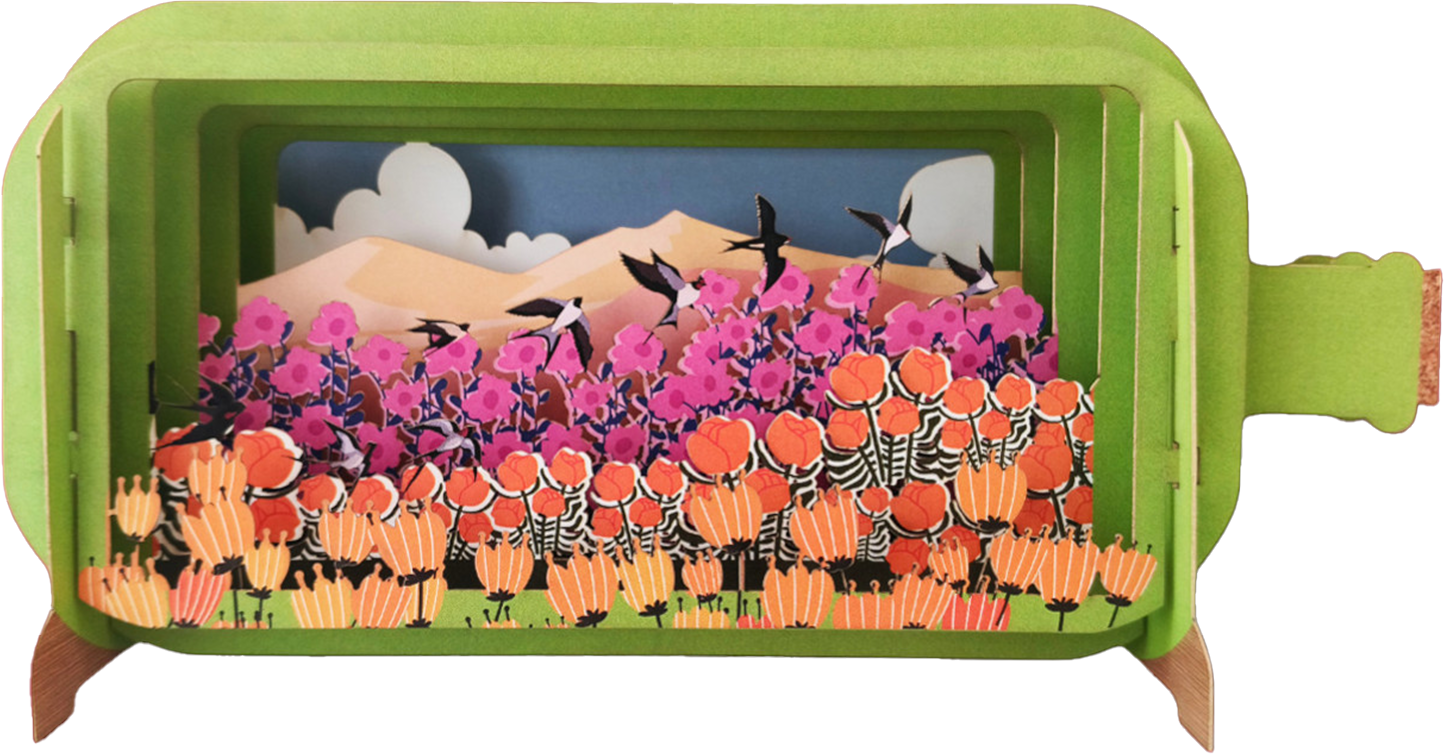 Risograph printed card with accents of fluorescent ink. Each card has a paper balloon inside that corresponds with the character on the front of the card. Blank inside for your own message. 105mm x 150mm - Pack of 6 105 mm x 150mm. Kraft envelope. Pack of 6. Tiger paper balloon inside.