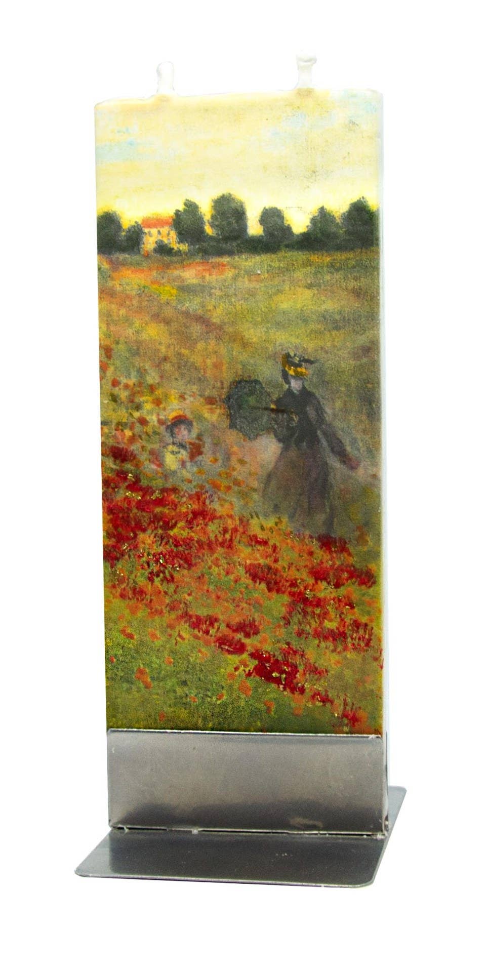 "Hand-painted á Drip Resistant á Twin wicks burn evenly á Self-extinguishing á Unscented and smoke-free Hand-painted in Lithuania, these candles stand out in their simplicity. The flatter design is a unique approach to candles that have a minimal and eye-catching feel. The twin wicks burn evenly and self-extinguish as they near the steel base, without any dripping wax or smoke. -Handmade using the highest quality German raw materials -Twin wicks ensure candle burns evenly and self-extinguishes as it nears the base -Steel stand helps make candle attractive display piece and doubles as a snuffer -Non-dripping, evaporates as it burns -Unscented and smoke-free -Every candle is hand painted -Creative gift and great stocking stuffer -Fits perfectly inside a greeting card Burning time: 3-4 hours Made in Lithuania Materials: Highly Refined Paraffin wax, Steel, Organic Cotton Wick Includes: One handmade flat candle and steel stand Dimensions: 2.4"" x 0.4"" x 5.9"" Weight: 0.22 lb"