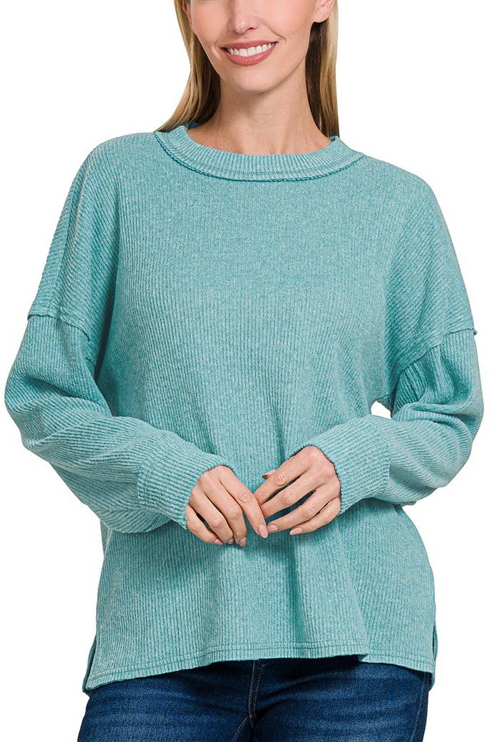 This sweater was a big hit at our boutique! Customers loved the open back which complimented the bralette that we added together on the mannequin.