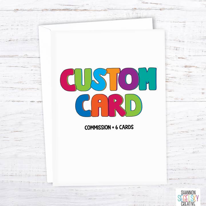 We do custom orders! If you see something you like but want a change, or if you want a completely custom card, then this is the listing for you. Please send us a message with the details of your request to confirm before purchasing. We just want to make sure you will be happy with your order before purchase. Custom illustrations are made to order. Work will start once the order has been placed. There is a minimum of at least one week to design and print the card before shipping. This listing DOES NOT INCLUDE the commission fee. You must purchase the Custom Greeting Card Design Listing in order to commission a custom design first. This is the correct listing to order more cards with your custom design without the commission fee. Shannon Segelsky Creative LLC retains all copyrights for custom card designs.