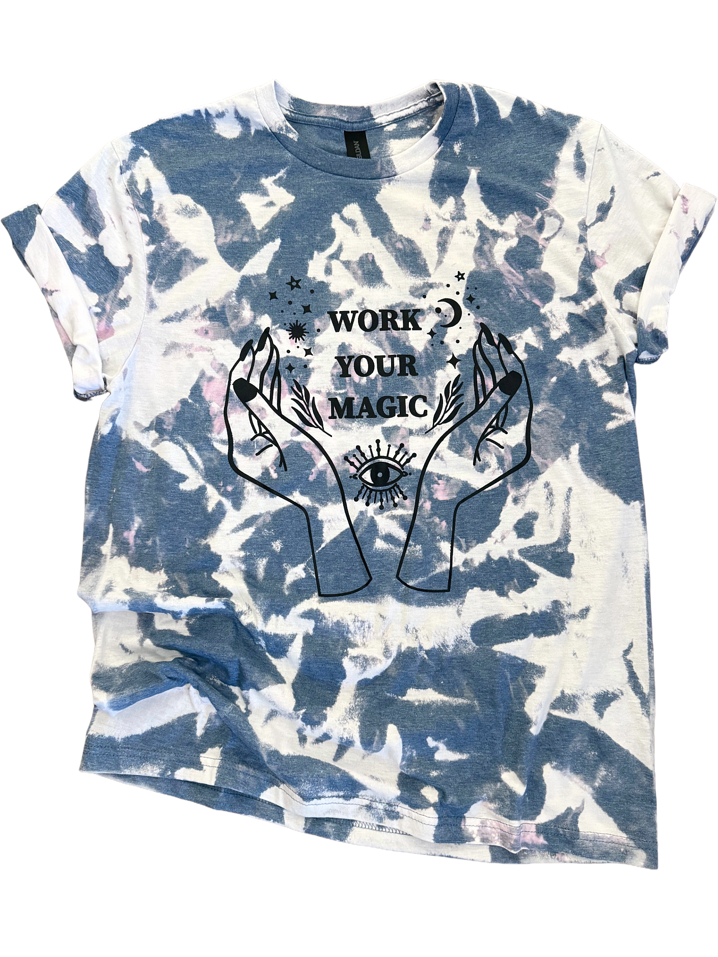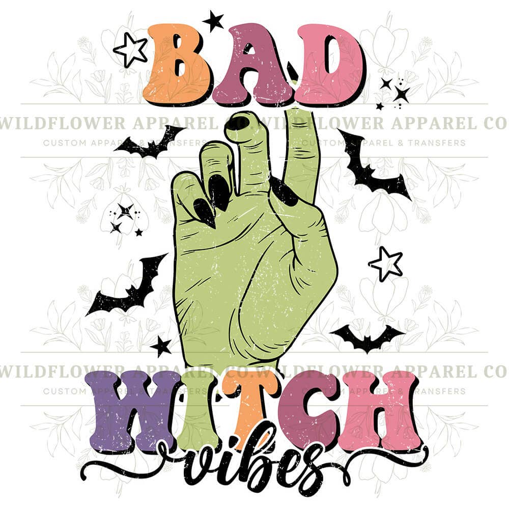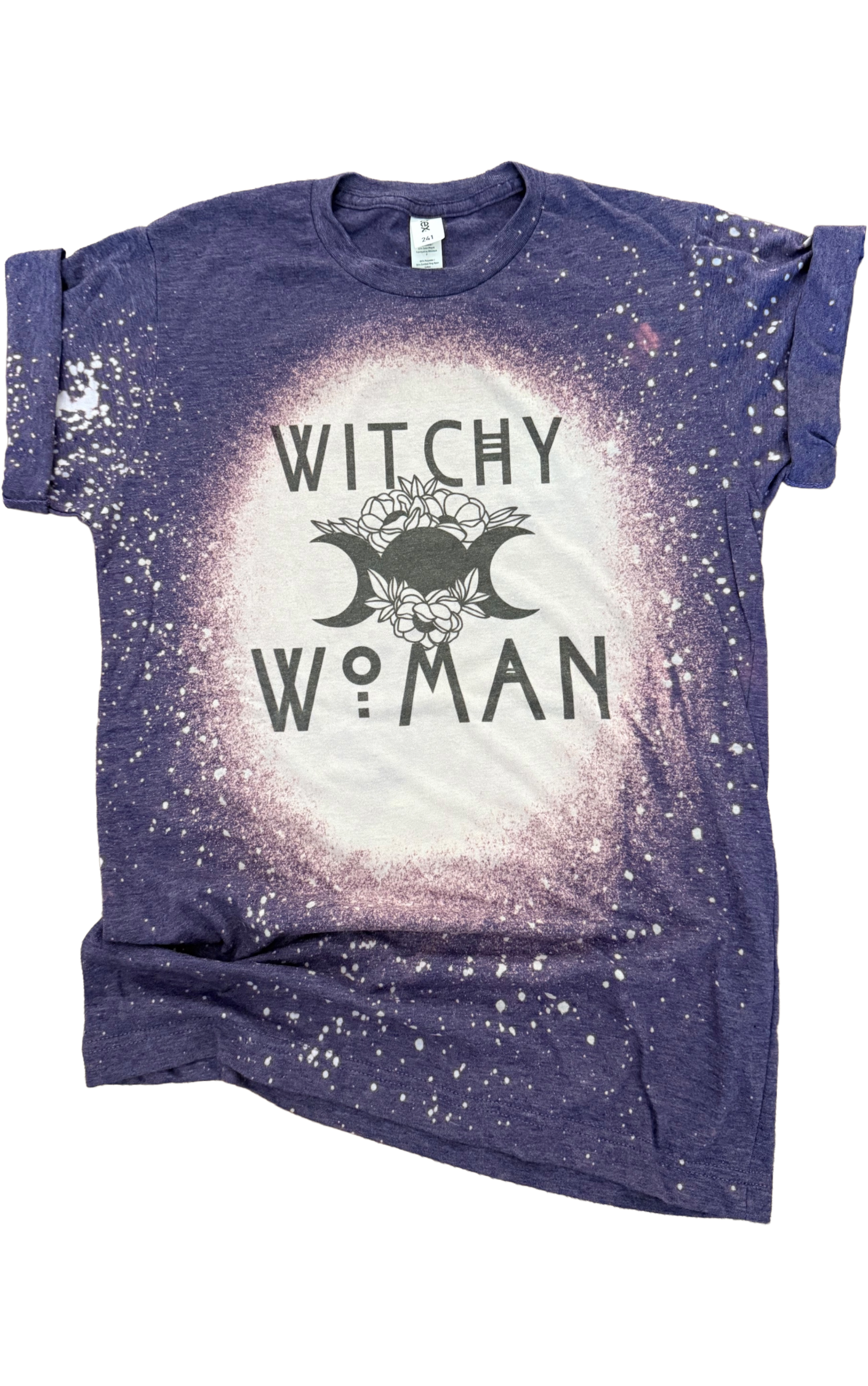 Bad Witch Vibes Bleached TShirt 🧙🖤 Witch, please. The cauldron’s hot and the vibes are hotter. This scrunchy-bleached tee casts a spell with bold “Bad Witch Vibes” lettering and a tatted hand throwing a peace sign—with dagger-sharp black nails, of course. Perfect for fall festivals, spooky szn, or just flexing your inner witchy energy year-round. 🌿 What You’ll Love: ✔️ Eye-catching bleach-washed pattern ✔️ Sassy peace sign graphic with serious main-character energy ✔️ Soft unisex fit that’s comfy enough for broom rides or brunch ✔️ Made for bad witches, basic witches, and everyone in between 📏 Sizes: S–3XL Fits true-ish to unisex sizing. Size down for a snug fit, or stay chill with your usual. 🧼 Washing Magic: Wash cold, inside out. Hang to dry or tumble low. Keep those witchy colors bright.