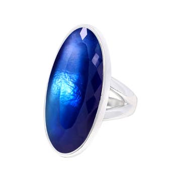 This stunning Sting Ray Inspired Ring features bold lines that create a captivating visual effect. Crafted from high-quality sterling silver, this ring is adjustable, allowing you to customize the size starting at a base size of 7.5 for a perfect fit. Stone Size: 13.5mm x 10.5mm Dimensions: 1" H x 0.875" W Make a statement with this unique ring that beautifully combines artistic design and expert craftsmanship, perfect for any occasion!