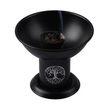 Sheesham wood charcoal incense resin burner. Size: 4" diameter, Material: Sheesham Wood and Brass