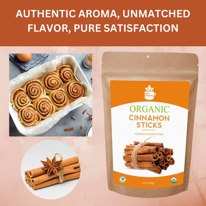 Organic Cassia Cinnamon Sticks: Botanical Name: Cinnamomum Verum Bring warmth and rich, spicy-sweet flavor to your kitchen with our Organic Cassia Cinnamon Sticks. Sourced from USDA-certified organic farms, these high-quality cinnamon sticks are perfect for cooking, beverages, and holiday crafts. Enjoy the bold aroma and natural goodness of pure cassia cinnamon! About this Item: * Strong, Bold Flavor – Known for its robust, spicy-sweet taste, ideal for enhancing both savory and sweet recipes. * USDA Organic Certified – Grown on organic farms, ensuring premium quality without synthetic additives. * Perfect for Infusions – Great for teas, mulled wine, and slow-cooked dishes, releasing a rich, warm aroma. * Non-GMO & Additive-Free – 100% natural cinnamon sticks, free from GMOs and artificial ingredients. * Long-Lasting Freshness – Sturdy sticks that retain their flavor and aroma longer than ground cinnamon. * Multi-Purpose Use – Great for cooking, crafting, and home decor, adding warmth and fragrance to every project. **