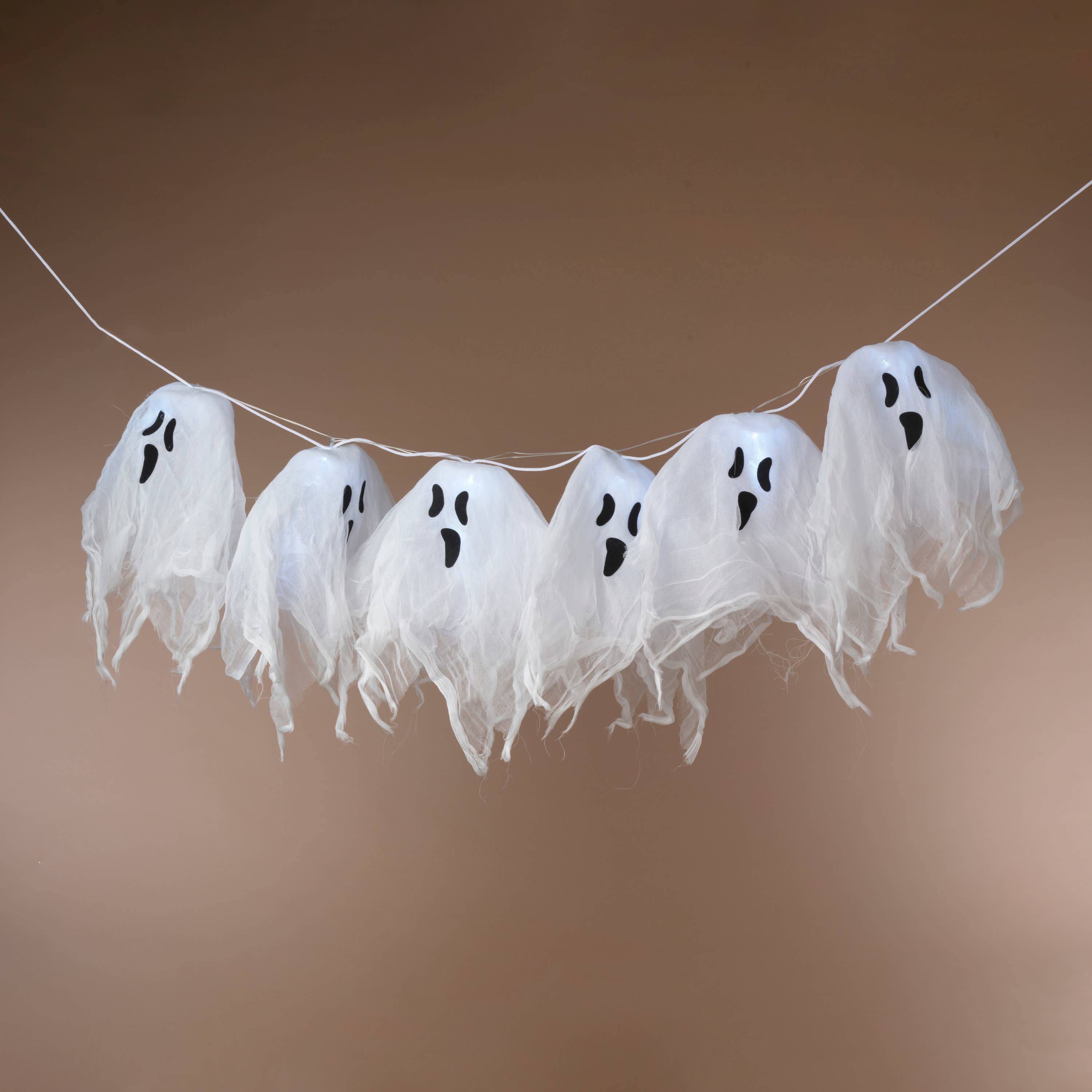 Primitive Ghost on Base is a primitive sitter on a distressed wooden base. Ghost features stick legs and a brown burlap finish with three cut-out holes for a classic ghost expression. Ghost is black underneath the burlap and looks wonderful on a tabletop, counter, or shelf throughout the Halloween season. Measures 9.5" high by 2.5" wide by 2.5" deep.