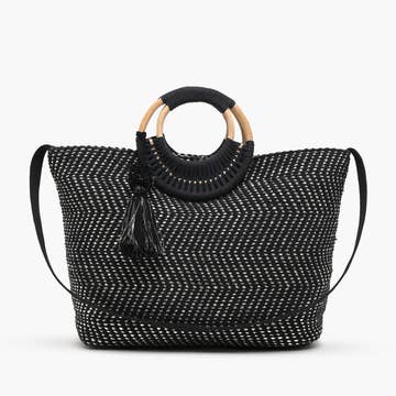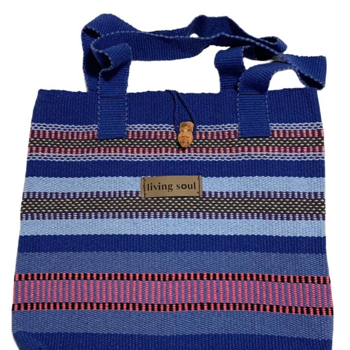 Handwoven Plastic Purse These extremely durable and colorful bags are handmade in Oaxaca. They are completely waterproof, wear well, and are simple to clean. The large bags are 18 inches wide by 13 inches tall. The medium bags are 15 inches wide by 12 inches tall. Every bag was hand woven by a woman in Oaxaca, who not only makes plastic bags, but manages a small shop where she sells them. She also weaves palm purses, too. Click here to see them: Palm Purses