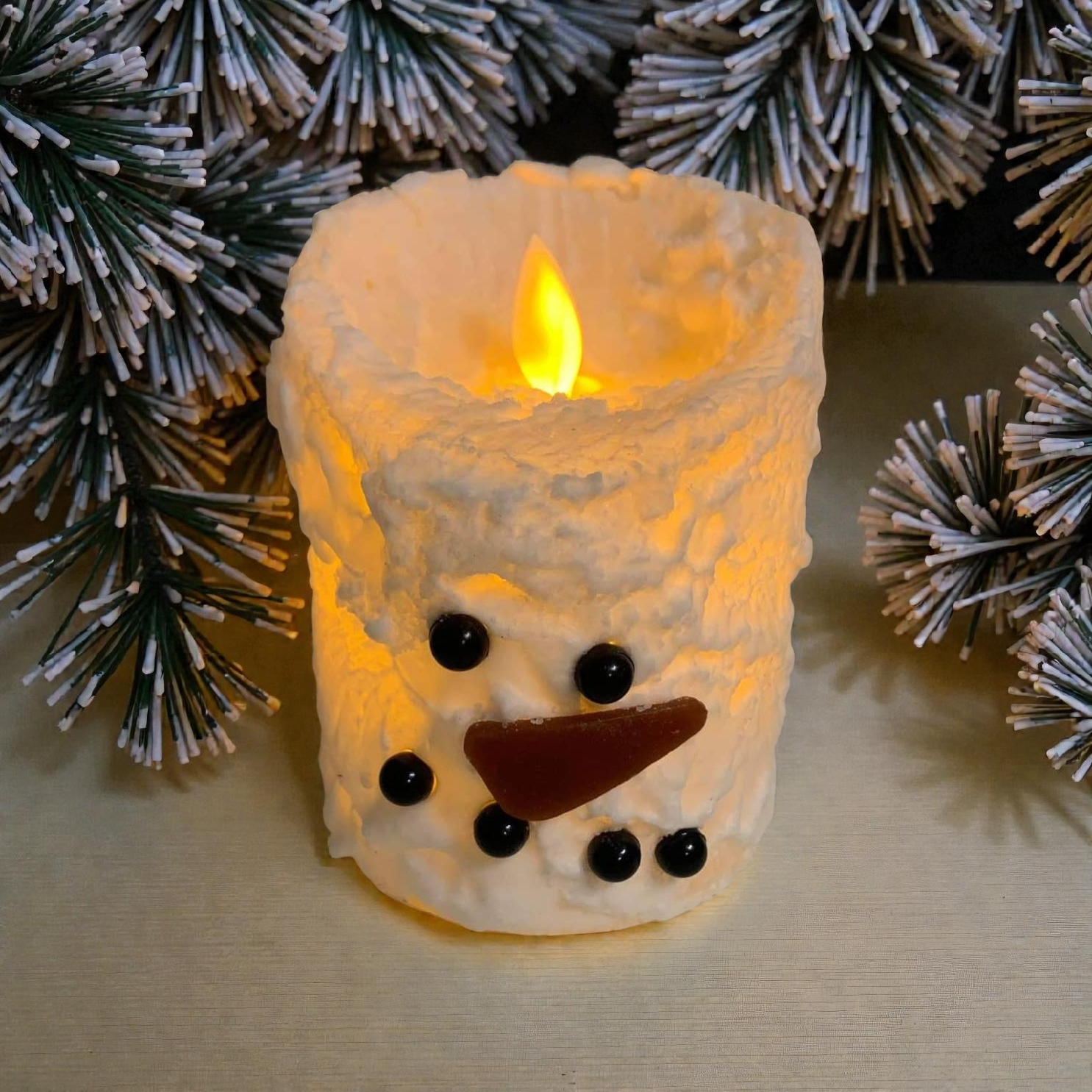 Snowman Bumpy White Moving Flame LED Candle 3in by 6in