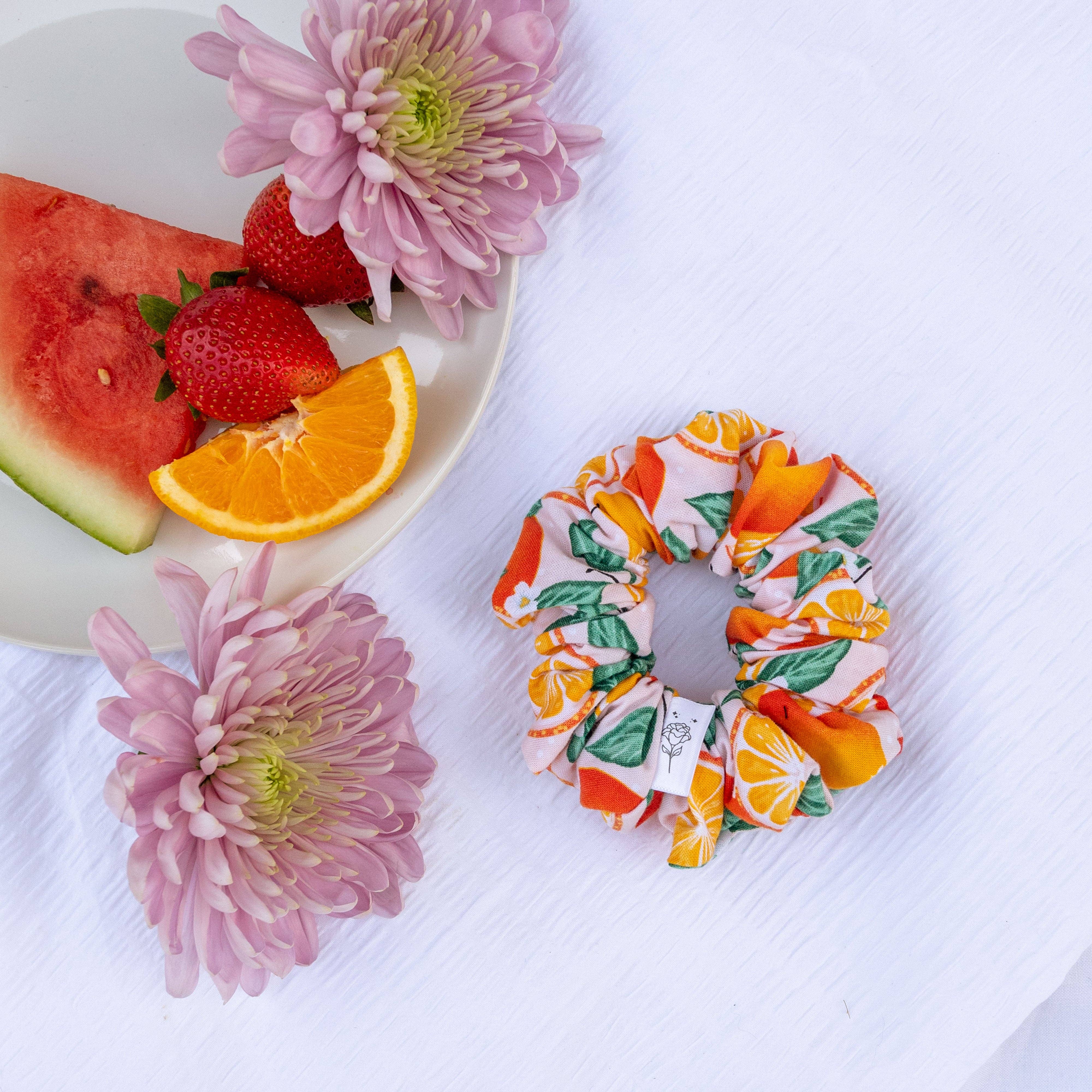 Fruit Scrunchie Collection l Lemon Stay sweet and cute with our fruit scrunchie collection. We use 1/2" elastic in our Fruit Scrunchies, making them perfect for any hair type. Thick hair approved! Check out the entire Fruit Scrunchie Collection in our shop! Color Description: • Lemon - Lemon Print (see 3rd photo for best color representation) Content: • 100% Cotton • Handmade in Los Angeles Size: • Approximately 4" in diameter • Wraps approximately 2x around hair • Elastic approximately 7" - 8” Perfect For: • Thick Short, Long, or Coarse Hair • Fine Short, Long, or Coarse Hair • Straight, Wavy, or Coarse Hair Check out our Scrunchie Care Instructions or Frequently Asked Questions.