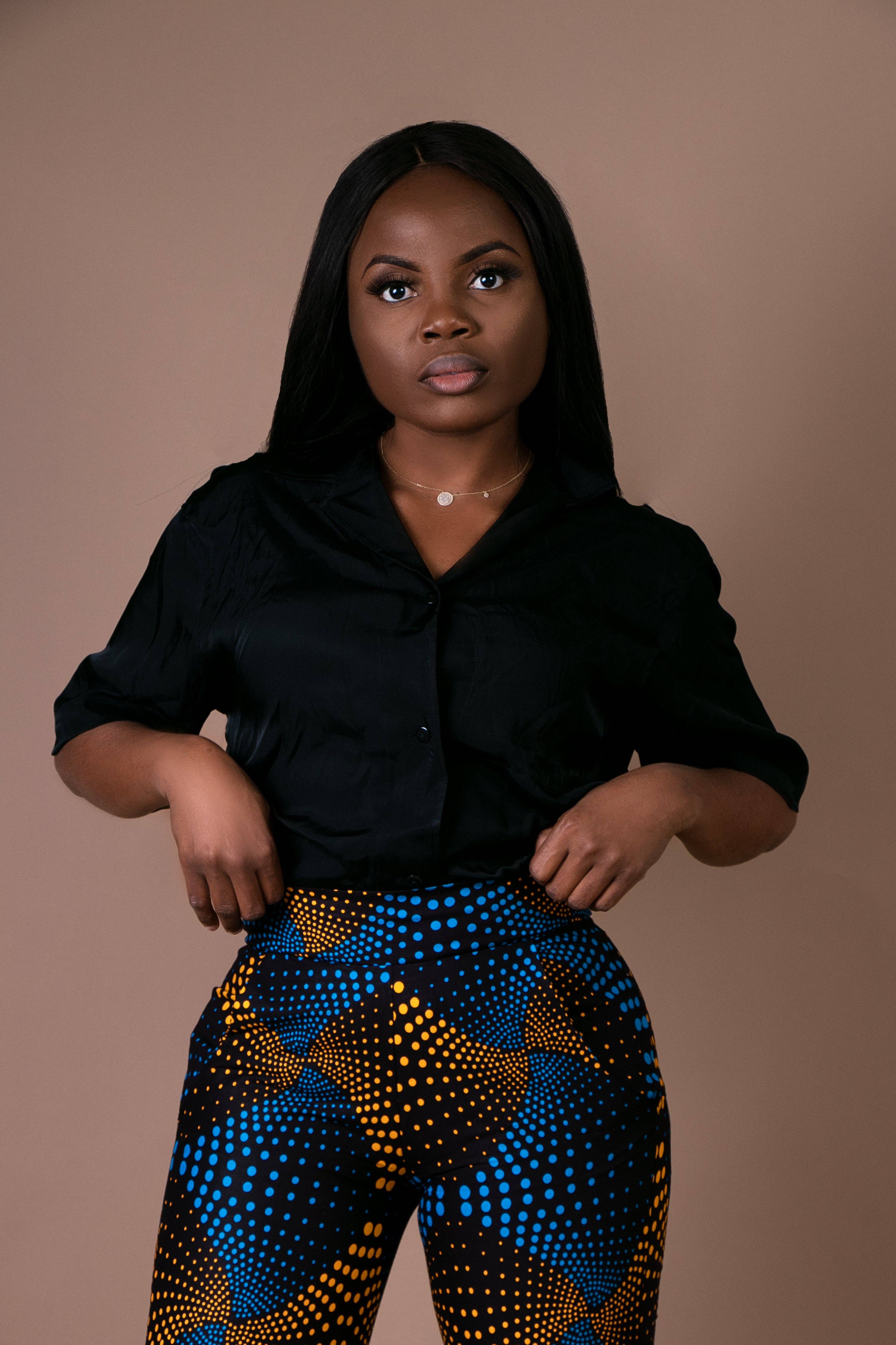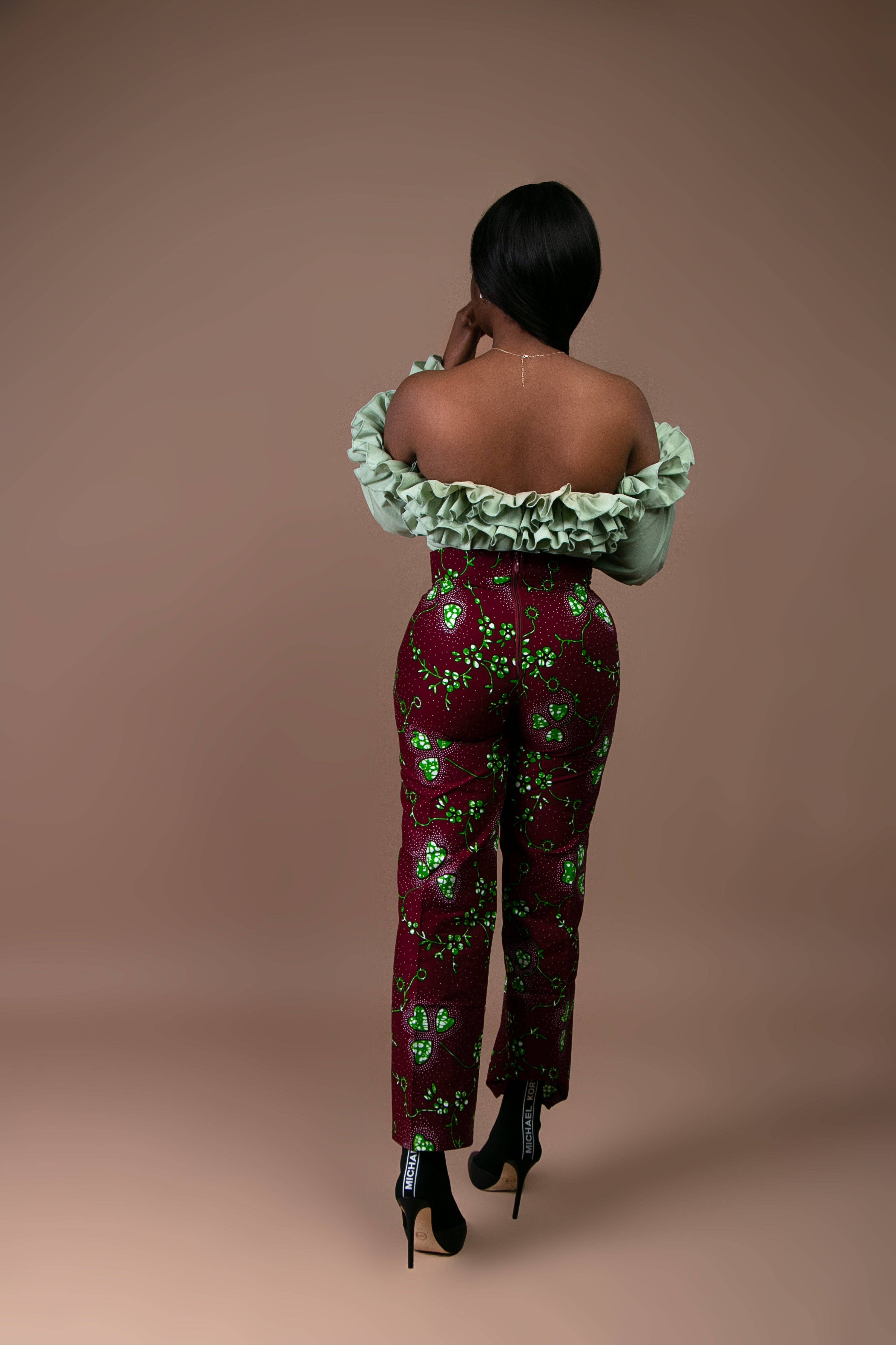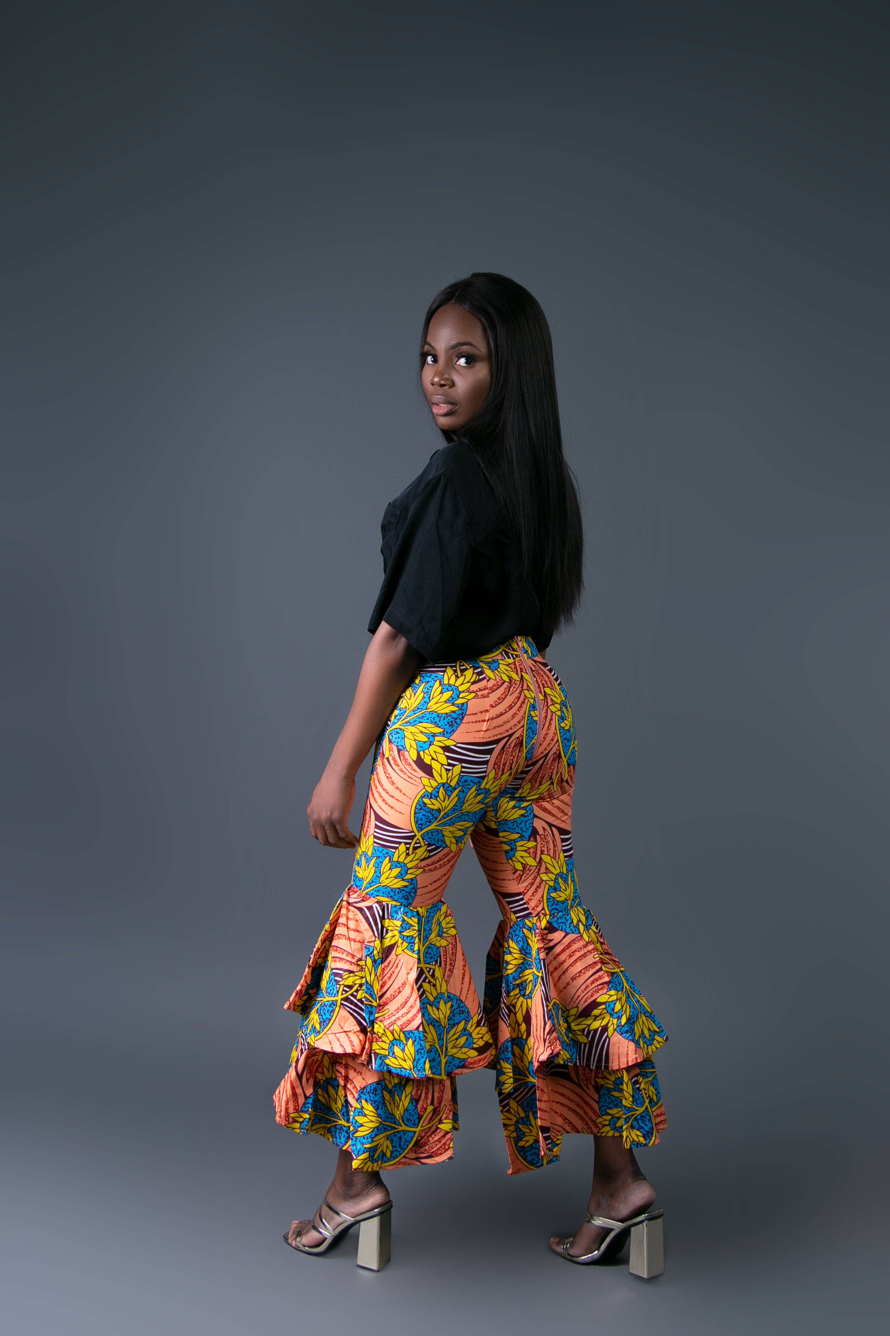 * African original fabric * Trouser with double flair leg * Back zipper * approximately 50 inches long