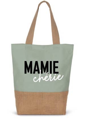 Personalized burlap and cotton tote Large capacity of 14 liters 40cm handles It is the ideal companion for your shopping trips, shopping, the market, the beach...
