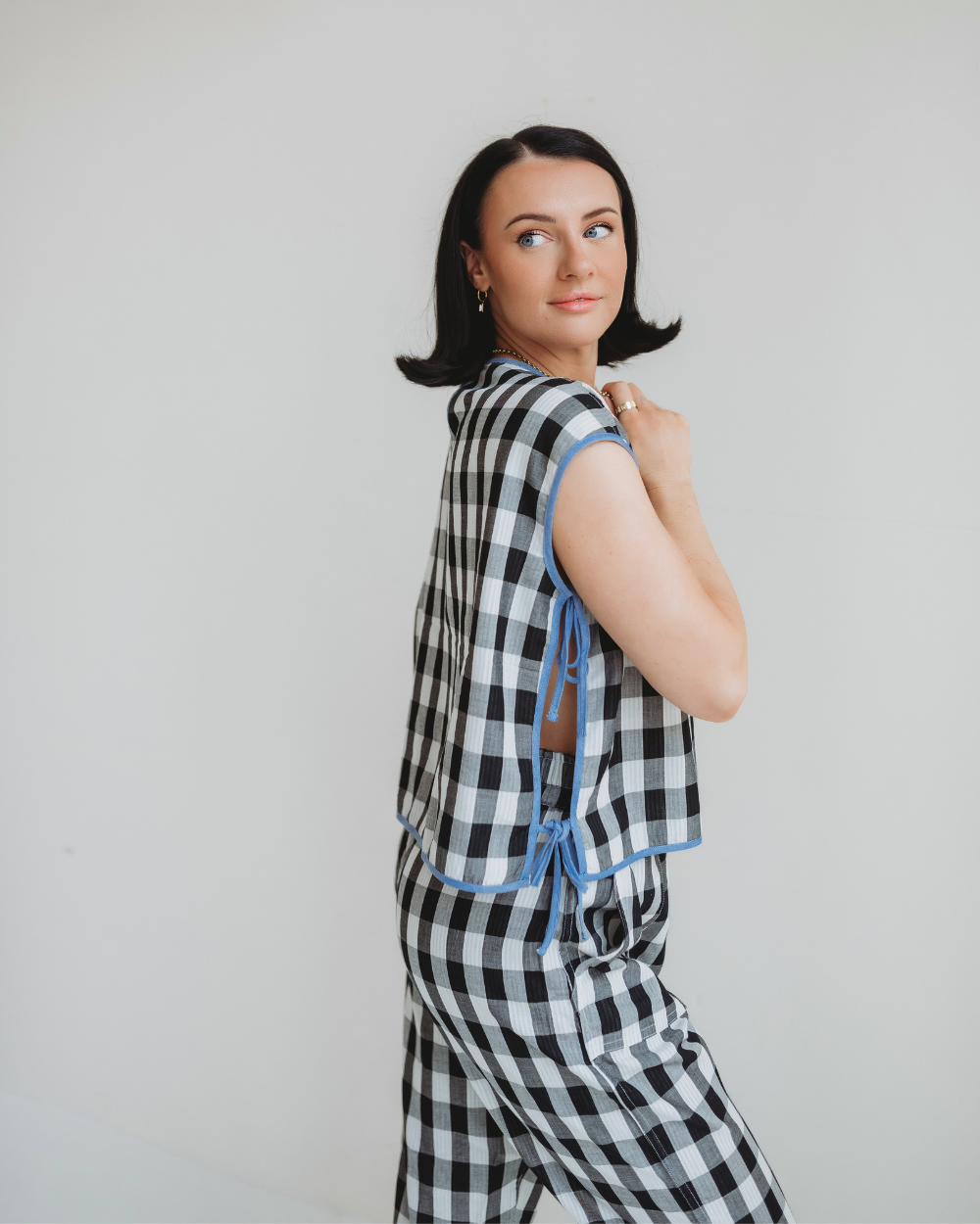 Wholesale Grace Multicolour Check Print Reversible Wide Leg Jumpsuit