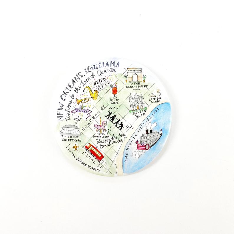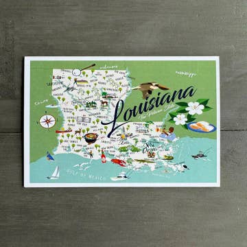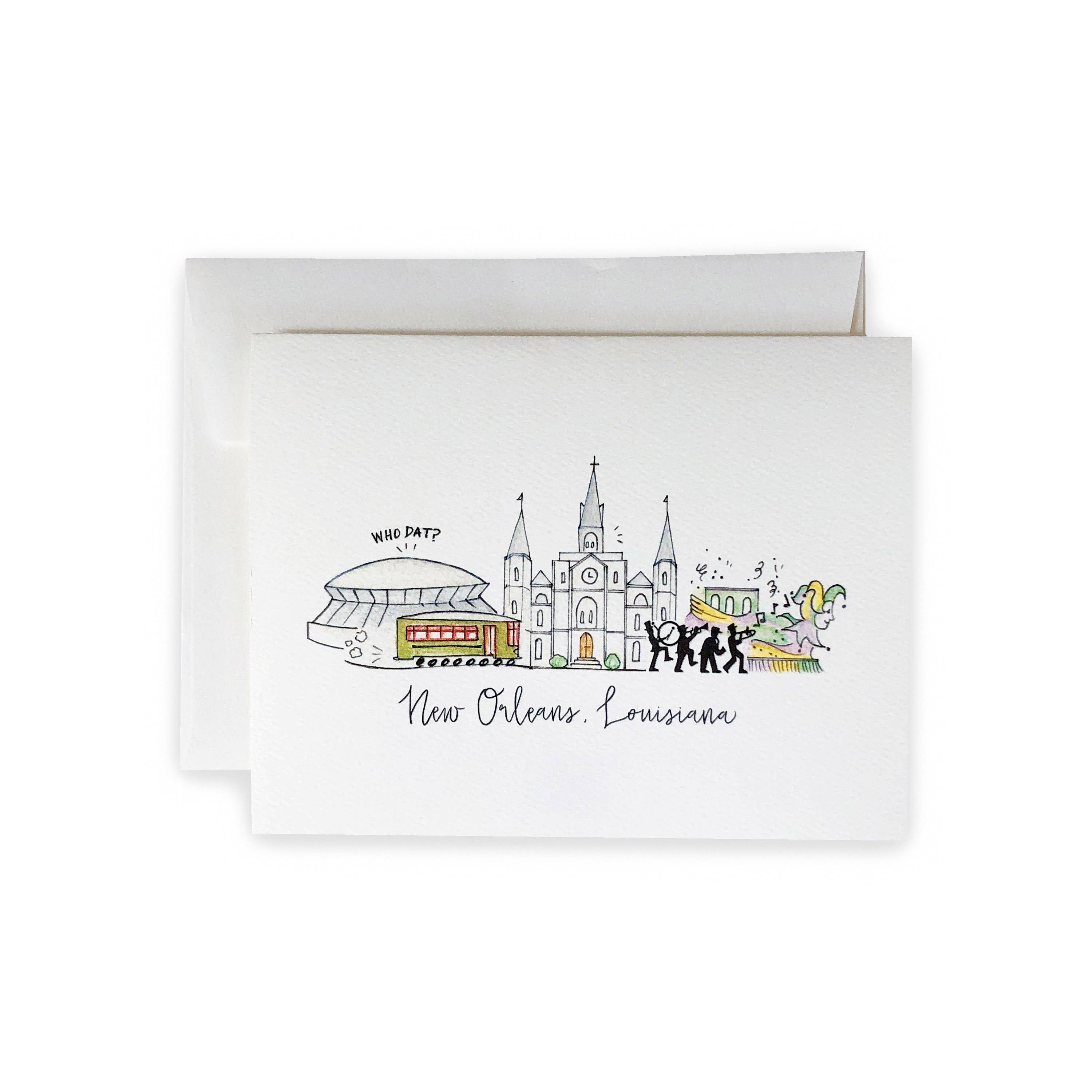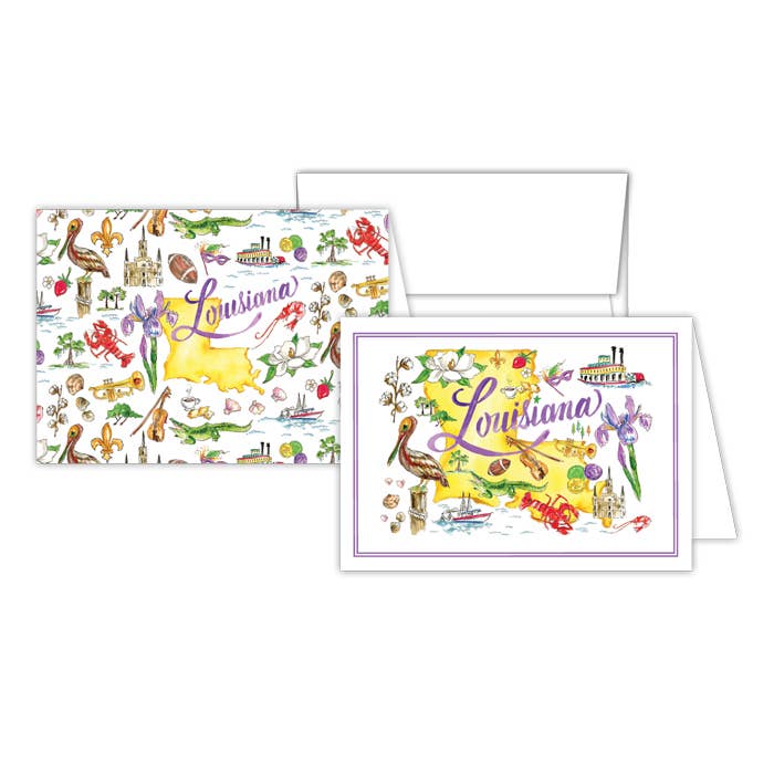 New Orleans, Louisiana Map Greeting Card or Notecard Set
