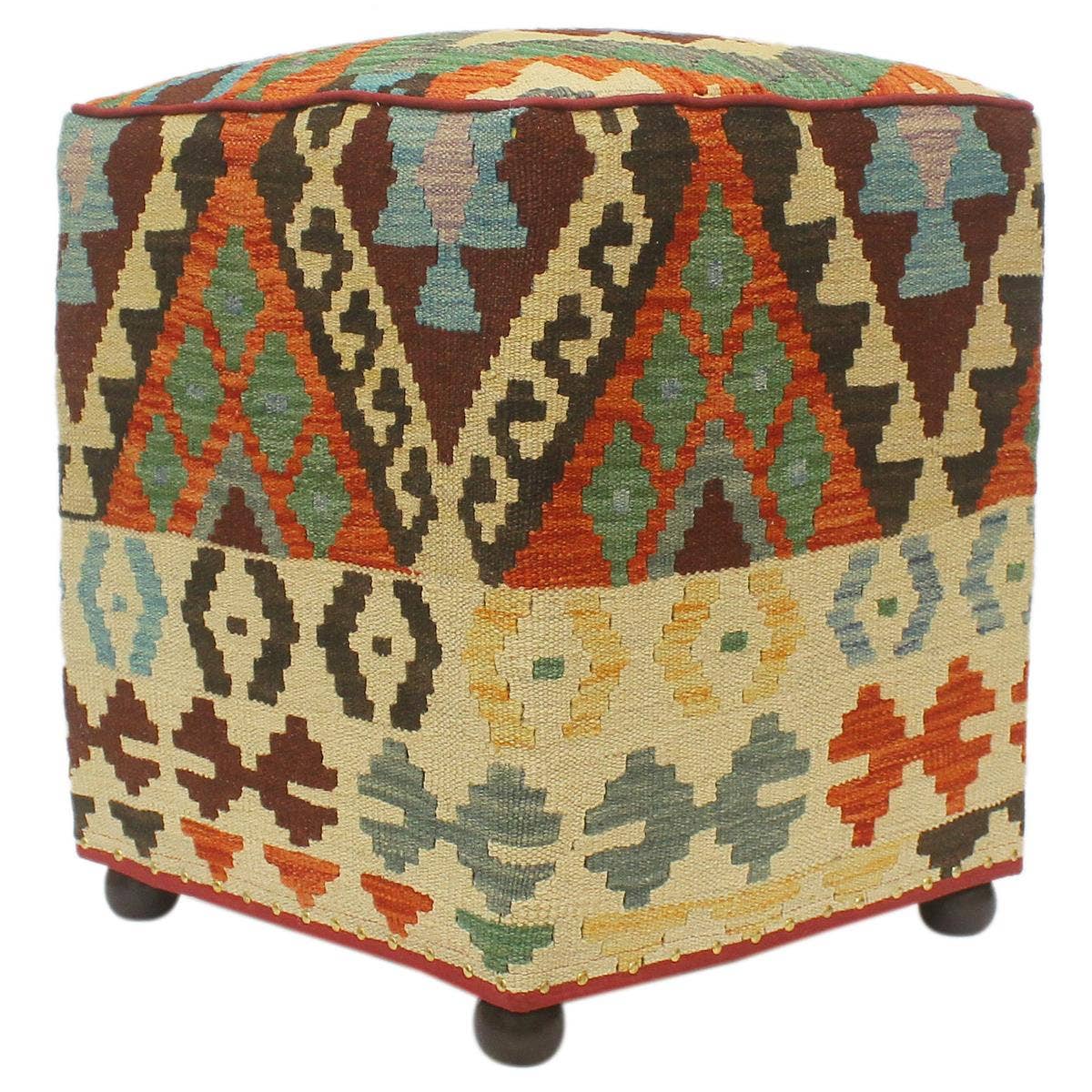 Luxuriously soft, this pouf provides versatility and style to any space. Featuring a globally inspired stripe design in a premium polyester blend, this piece perfectly functions as extra seating or table space. Machine Made in Turkey 54% Polyester, 31% Acrylic and 15% Cotton Affordable yet offers luxurious, soft texture Perfect for bohemian, global, or eclectic-themed settings PLEASE NOTE: Digital images and colors may vary due to differences in computer monitors and mobile phones. Measurements are approximate and patterns may vary slightly according to shape and size selected. Pattern: Geometric Color Block Style: Moroccan, Global Transitional, Casual Color: Multicolored Size: 18" x 18" x 18"