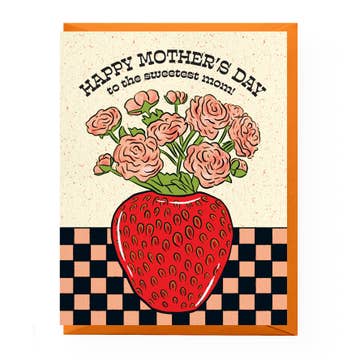 An adorable berry basket in all shades of pink send love to the sweetest mommas! Idlewild Co. greeting cards feature our original, hand-painted illustrations, and are printed in vibrant color on beautiful, opaque FSC-Certified papers. We pair each with a matching envelope and they are delivered in a cello sleeve–or opt in for our "naked" option, which will ship packaging free, and includes a "card clasp" removable sticker packaging. • Heavy, matte eggshell stock • Blank Inside • 4 3/4" x 5 1/2" • Paired with matching envelope Keywords for your SEO: Greeting Card, cards, card, Mother's Day, Mom, Momma, Cute, farm, garden, strawberry, berry, farmers market, kids, stationery, office supplies, cute desk accessories, desktop, notebooks, stationery cute, stationery gifts, stationary, notes, hand painted, painted cards, gift shop, spring, Mom's Day