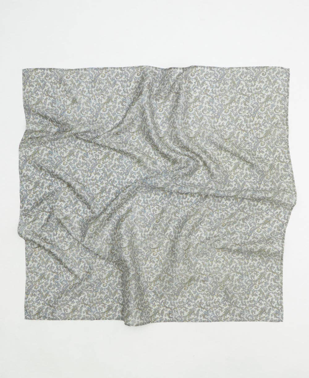 SKU: 23SLKSCRF1 Made in India Care Instructions: Dry clean only Color: Multi-Colored Fabric: 100% Silk Fabric Occasion Theme: Easter, Everyday, and Mardi Gras Scarf Style: Square Product Language: English Weight: 40.82 g (1.44 oz) Product Materials: Organic, Recycled, and Upcycled Packaging: Recyclable, Recycled, and Reduced Production: Ethically sourced, Fair trade, and Low-impact transport