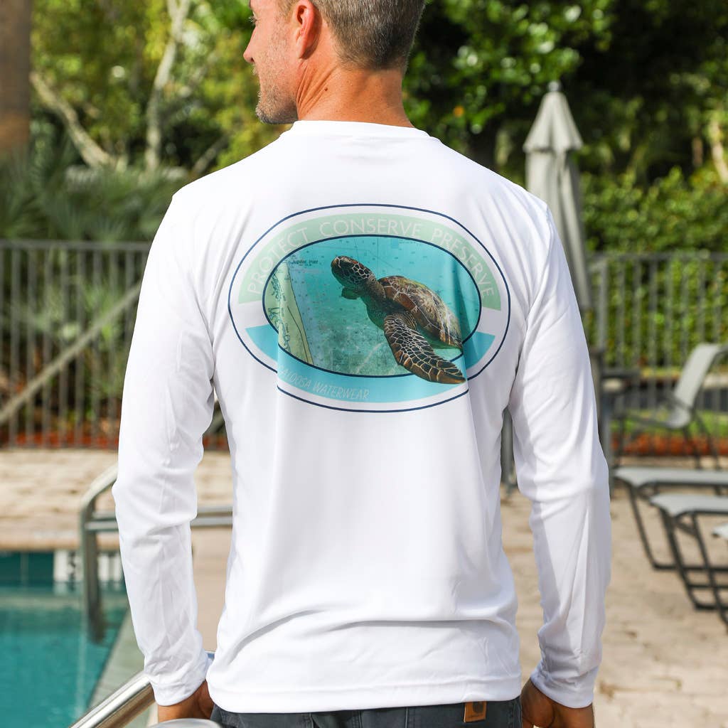 Whether You Are an Avid Fisherman or Just Along For the Ride, You'll Look Like a Pro in Our Mahi Shirt, Otherwise Known as Dolphin. Protect Your Skin With Our Long Sleeve Ultra Comfort Shirt. Don't Forget To Use Sunscreen Too. Men's: Crew Neck With Long Sleeves. Mahi Graphic Centered On Back of Shirt. Caloosa Logo on Front Left Chest. 100% Microfiber Polyester. UPF 50. Wicking Technology and Quick Dry For Your Comfort. Machine Wash. Tumble Dry. Imported Fabric. Printed in USA.