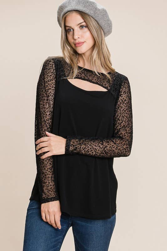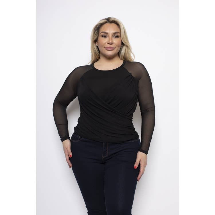 90452-E - Black Mesh Long Sleeve Top