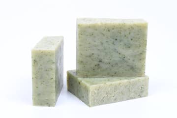 Made in United States Ingredients: Ingredients: olive oil, coconut oil, shea butter, avocado oil, water, lye peppermint EO, green tea powder Weight: 113.4 g (4 oz)