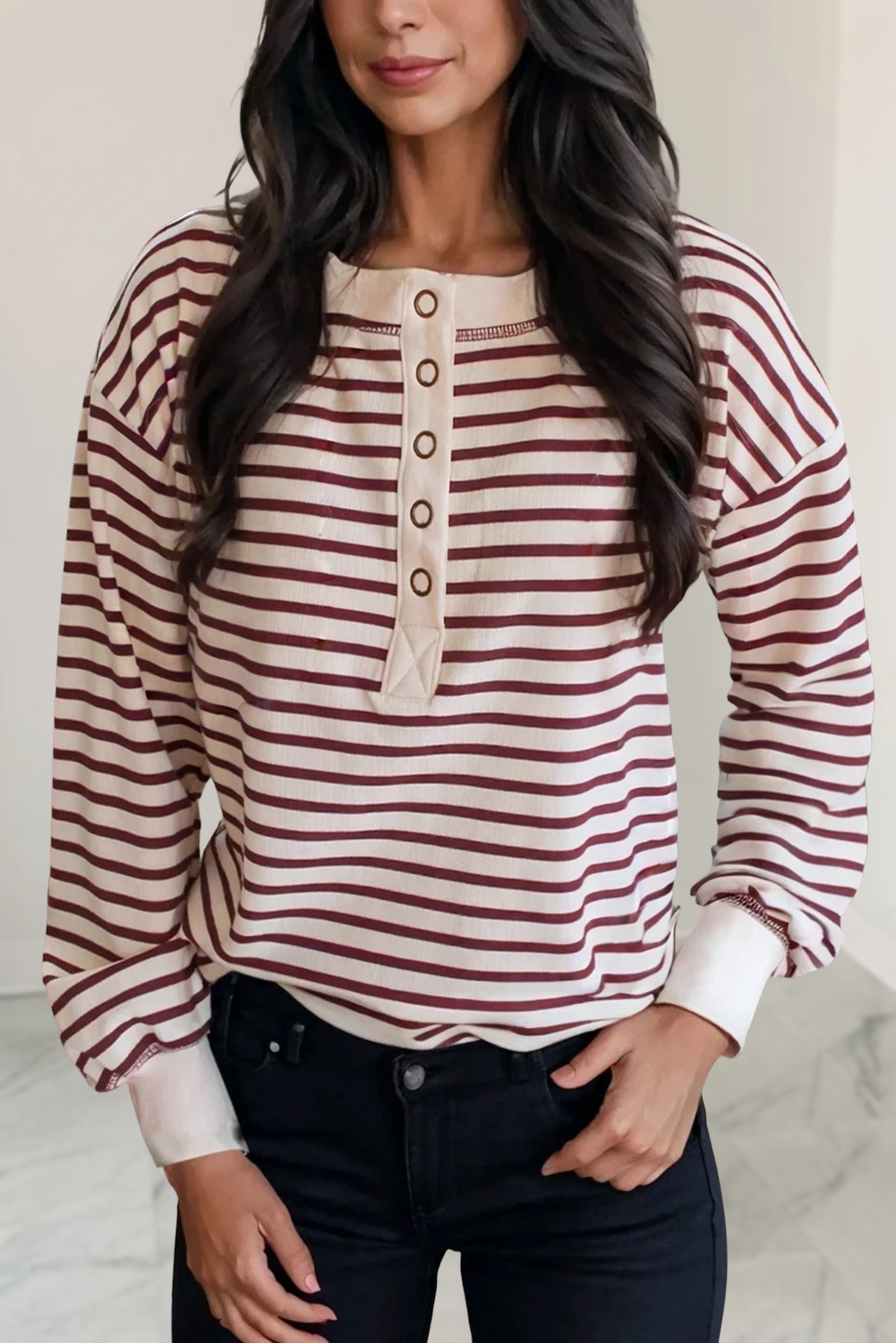 No reviews for (PLUS) STRIPE LONG SLEEVE TOP WITH WAVY NECKLINE yet.