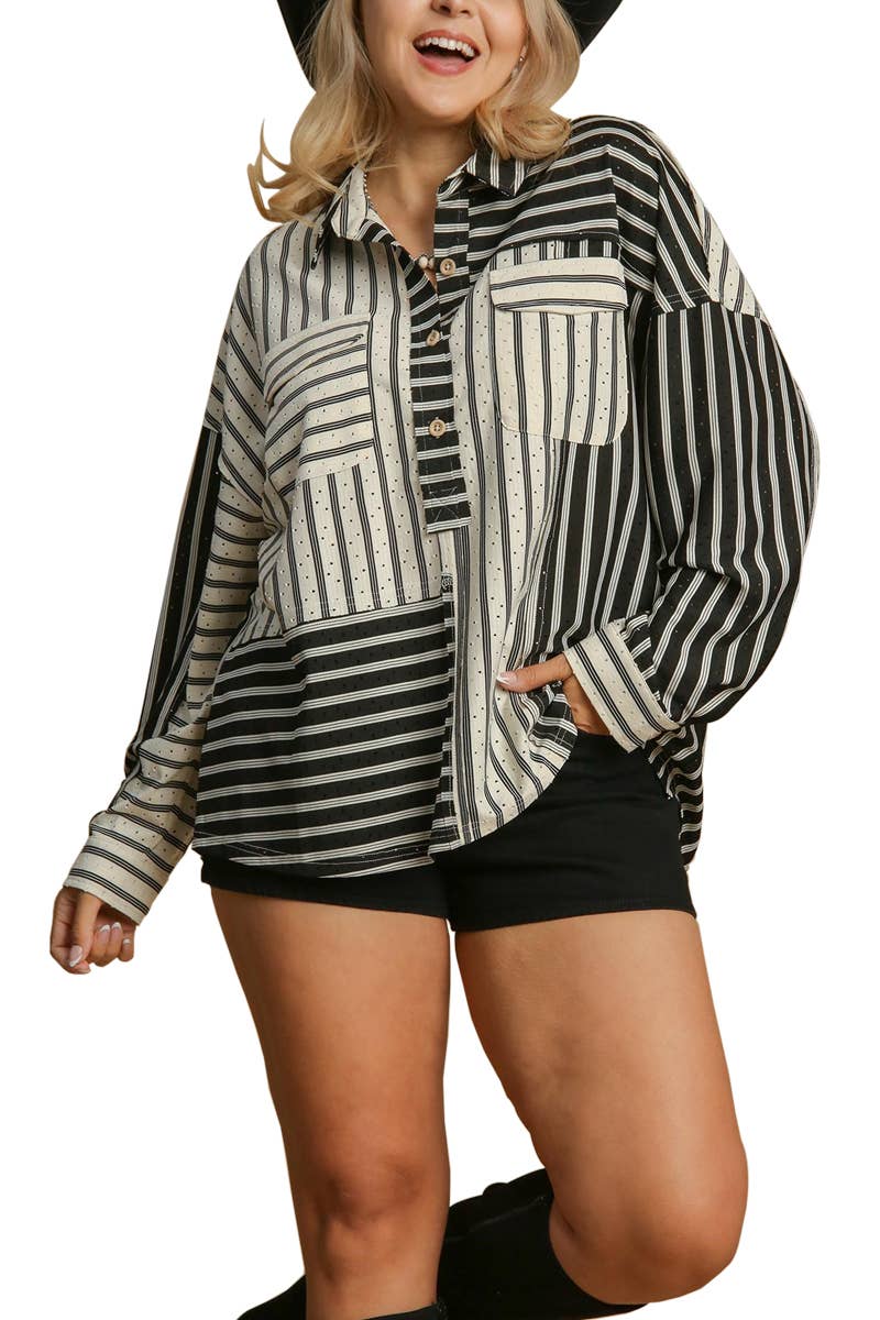 +STRIPE TOP +WAVY NECKLINE +LONG SLEEVE THIS LISTING IS FOR PLUS