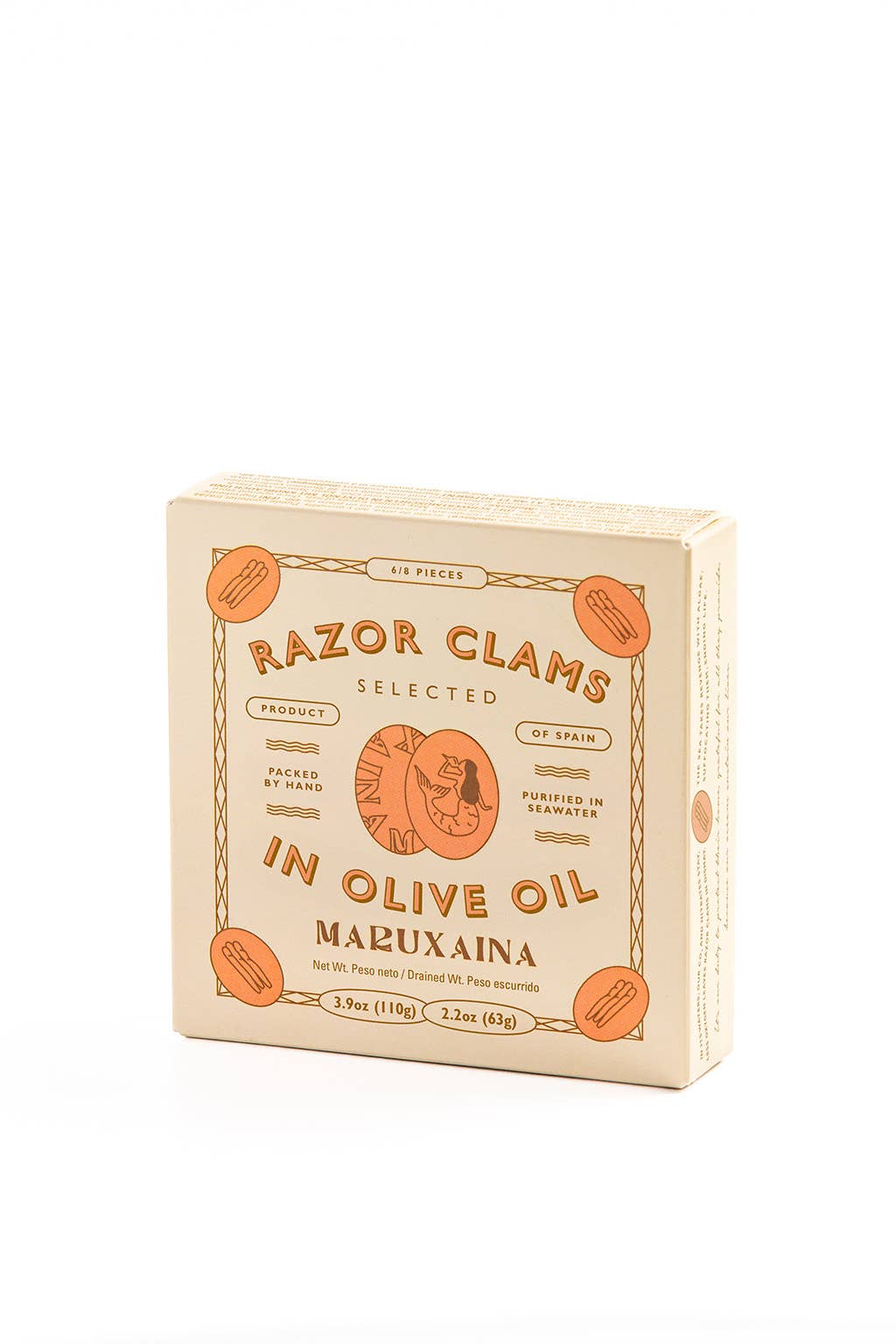 Maruxaina Mussels in Spicy Escabeche with Spanish Olive Oil. 8/12 pieces. Mejillones en Escabeche Picantes con Aceite de Oliva. 8/12 piezas. Size: 3.88oz (110 g) Ingredients: mussels (mollusc), olive oil (20%), wine vinegar, garlic, bay leaves, chili pepper and spices. May contain traces of fish. Product of Spain Packed by hand one by one At Maruxaina, we take tradition to another level with our preserves. We select the finest seafood products to offer you quality, flavor, and authenticity in every bite. If you're a fan of authentic flavors, try our preserves and discover the true taste of the RÃas Baixas. 100% taste of the sea Artisan craftsmanship Premium quality