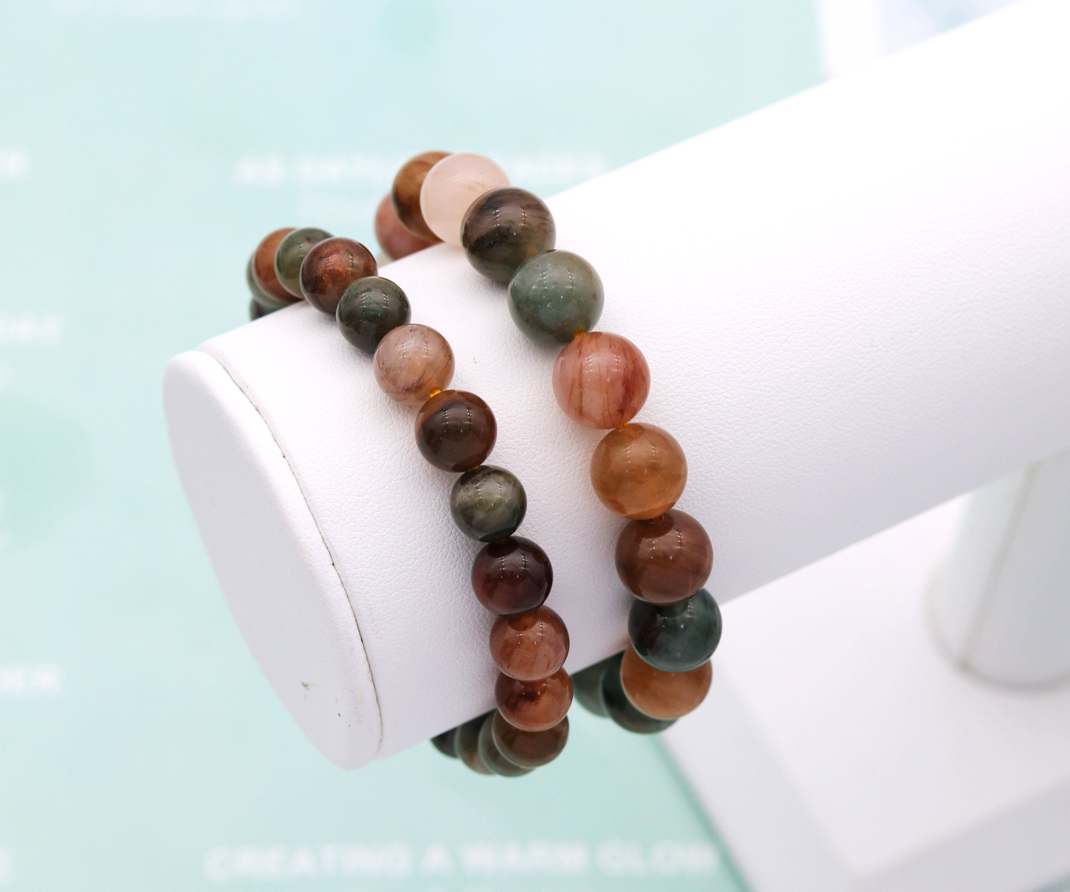 🔆 Features 8mm African Turquoise Jasper for growth, positive change, and confidence; Baltic Amber for sunshine, vitality, and balance; and Hazelwood for neutralizing acidity. 🔆 Our jewelry is handmade using natural gemstones. Each piece we create is unique and may vary slightly in color, size, and shape. 🔆 Handcrafted in North Carolina by our small team of women. Hazelwood beads are made from the branches of the hazelwood tree. Hazelwood helps to neutralize acidity and balance pH in the body. Baltic Amber, aka "Gold of the Sea" or "solidified sunlight," is one of the world's oldest and most envied treasures. It is a fossilized tree resin formed by light and life, preserved by time, and washed up on the shores of the Baltic Sea. It is warm to the touch and light to wear. Baltic Amber is revered for its high concentration of succinic acid. Each bead is a beautiful and unique piece of history - a fossil from an ancient forest! **Handmade on premium stretch cord.