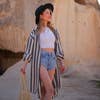 Wholesale Anthracite Striped Long Linen Shirt Dress