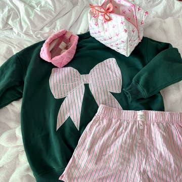 Winter Green Striped Bow Embroider Sweatshirt
