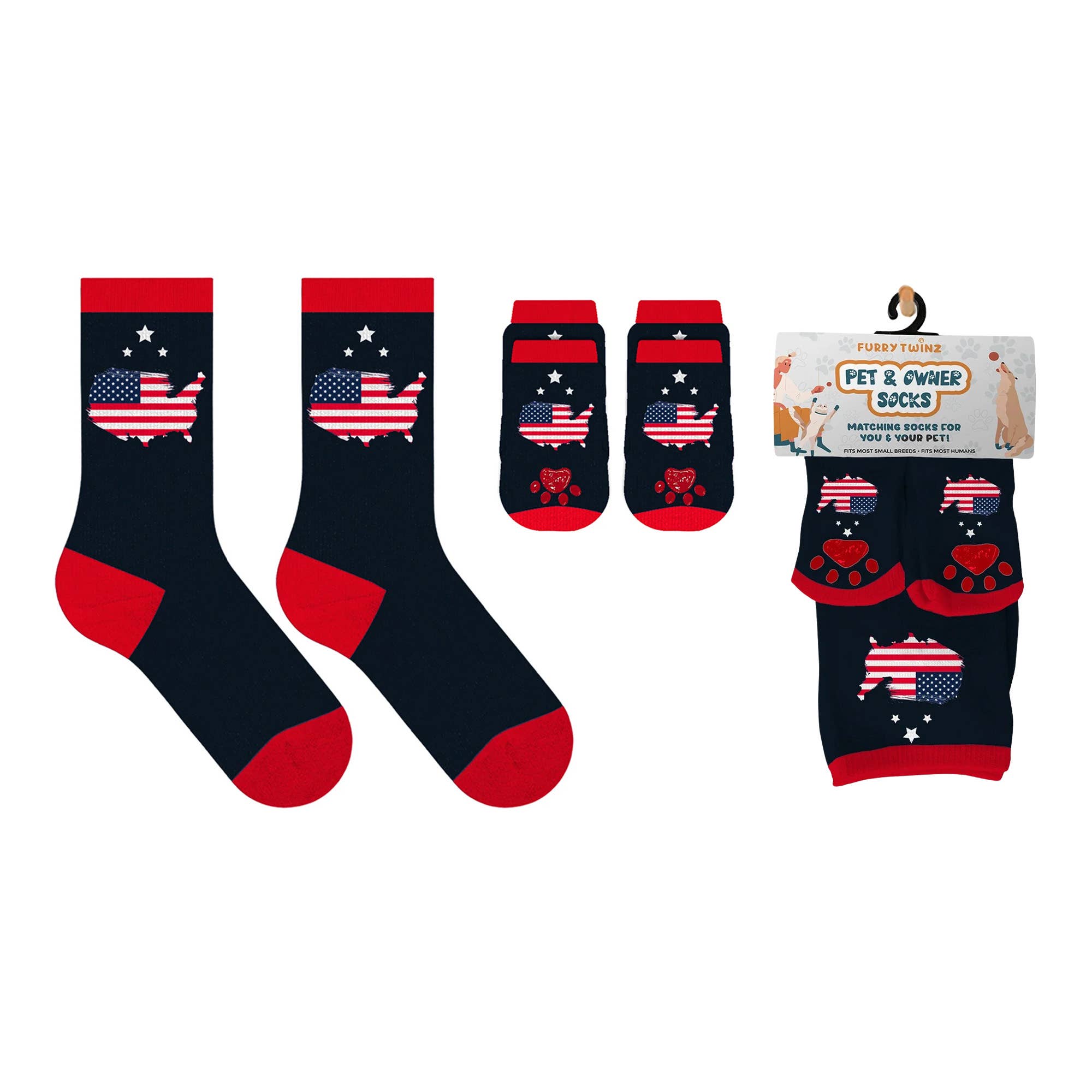 Case Pack: 24 pairs (assorted styles) + free display Description: Crew-style socks designed specifically for small dog breeds. These novelty pet socks are perfect for in-store gifting sections or pet aisles. Each pair offers a snug fit with fun designs to appeal to pet lovers. Socks are machine washable and come individually packaged for resale. A countertop display is included for effective merchandising. Key Features: Designed to fit most small dog breeds Fun, colorful assorted styles Crew silhouette with soft, secure fit Machine washable Great for pet boutiques and gift stores Individually packaged Eye-catching retail display included Case Pack: 24 pairs (assorted styles) + free display