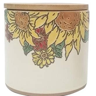 This chazutsu (tea canister) is made from tin-plated steel and wrapped with wrapped with gold Italian paper made in Florence by Rossi, decorated with white flowers Featuring an airtight inner lid, this canister is perfect for keeping 100 grams of tea fresh. Note: the canister's capacity is measured with sencha, meaning it may hold more or less of other teas. Founded in 1910, Kotodo (江東堂) has been producing handmade tea canisters for 112 years. Compared to machine-made canisters, their washi-wrapping is seamless, with no bumps where the lid meets the body, producing a clean silhouette. Additionally, the lid can be rotated counter-clockwise until it clicks, ensuring the pattern is perfectly aligned. Dimensions: 7.6cm (3in) - width 8cm (3.1in) - height 100g - capacity Condition: New This Japanese item ships from the United States