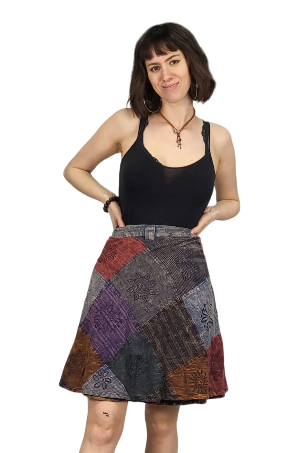 Flowing, adjustable cotton wrap skirt featuring vibrant patchwork and hand-printed designs. Ethically handmade in Nepal, perfect for free-spirited style and all-season comfort. Why You’ll Love It: * Fair Trade & Handmade: Supports ethical craftsmanship in Nepal * 100% Cotton Fabric: Lightweight, breathable, and durable for year-round wear * Adjustable Wrap Design: One-size-fits-all with customizable tie closure * Unique Patchwork: Hand-printed vibrant patterns for a distinctive boho look Available Sizes: One Size Fits Most Colours: Rust, Green, Blue Fabric: 100% Cotton Style Tip: Pair with a fitted tank or layer with cozy sweaters to match seasonal vibes effortlessly.