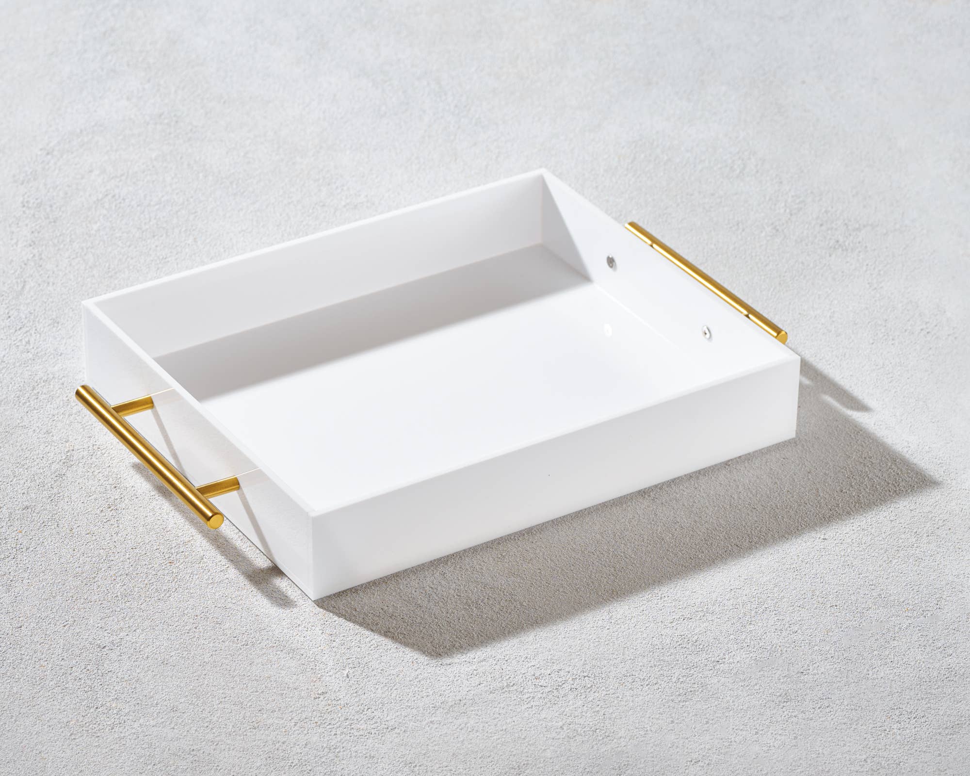 Trays are so much more than serving pieces! They offer fresh potential for modernizing every room of the home or office. Spotlight favorite things on our beautiful Coco tray and watch them come to life! Try it on a coffee table with favorite books or candle...on a countertop or bar filled with drinks and nibbles, on a vanity with an array of perfume bottles, or...a nightstand, desk or bed. Handmade of food-safe acrylic. Size: 14" x 2.25"