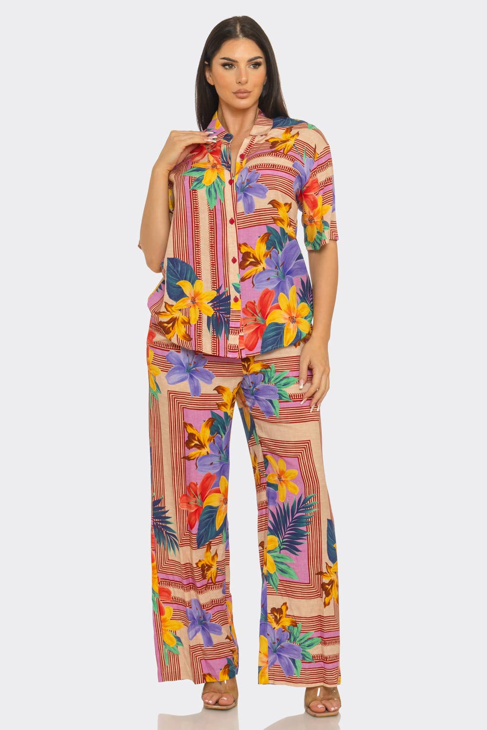 Summer Beach Vacation Printing 2pcs Pants Set JRM057 Beach Vibes: Vibrant prints for a stylish summer look. All-Day Comfort: Soft, breathable fabric for cool wear. Mix & Match: Versatile pieces for any occasion. Long-lasting Quality: Durable materials for frequent wear. Perfect Gift: Stylish surprise for beach lovers. Size Chart (cm) Size Bust Length Shoulder Sleeve Pants length Waist Hips S 95.0 68.0 42.0 28.5 107.0 64.0 103.0 M 99.0 69.0 43.0 29.5 108.0 68.0 107.0 L 103.0 70.0 44.0 30.5 109.0 72.0 111.0 XL 107.0 71.0 45.0 31.5 110.0 76.0 115.0 Size Chart (inch) Size Bust Length Shoulder Sleeve Pants length Waist Hips S 37.4 26.8 16.5 11.2 42.1 25.2 40.6 M 39.0 27.2 16.9 11.6 42.5 26.8 42.1 L 40.6 27.6 17.3 12.0 42.9 28.3 43.7 XL 42.1 28.0 17.7 12.4 43.3 29.9 45.3