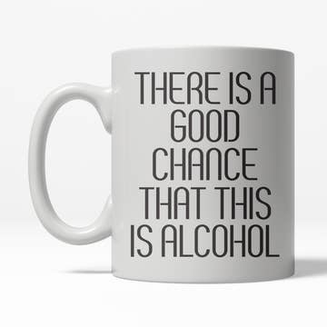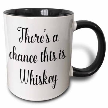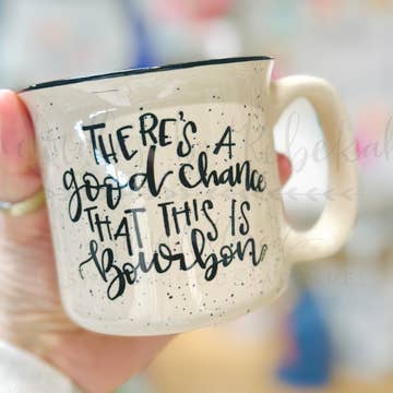 There's A Chance This Is Bourbon! There's a chance it is a lot of things.... enjoy your favorite drink and keep them all guessing with this comedic mug! Perfect for any drink, hot, cold, alcoholic, or otherwise :) All of our mugs are hand-thrown in stoneware clay and hand-painted. This piece was hand-dipped in our lead free Floating Blue glaze and holds approximately 14 fluid ounces. As this mug is hand-made, please understand that no two will be completely identical. Such is the uniqueness of handcrafted items! Microwave, dishwasher, and food safe. Avoid extreme changes in temperature and do not use on the stove/on an open flame. Hand-made in the heart of the Poconos, PA, USA.