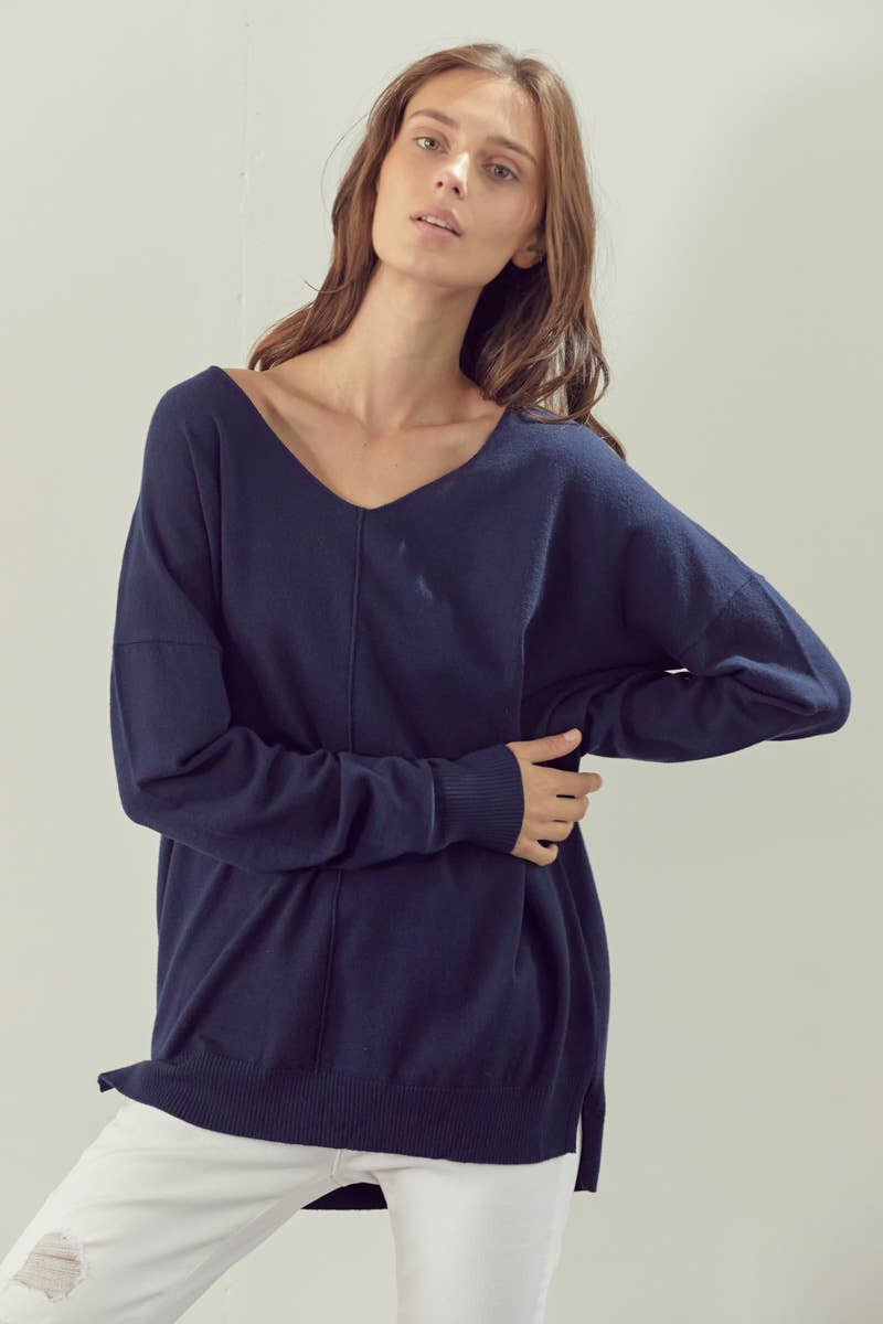 ....SI-21303 Long Puff Slv V Neck Rib Sweater
