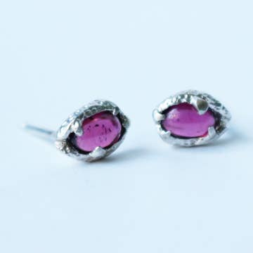Garnet Stud Earrings | Sterling Silver | Triangle Studs
