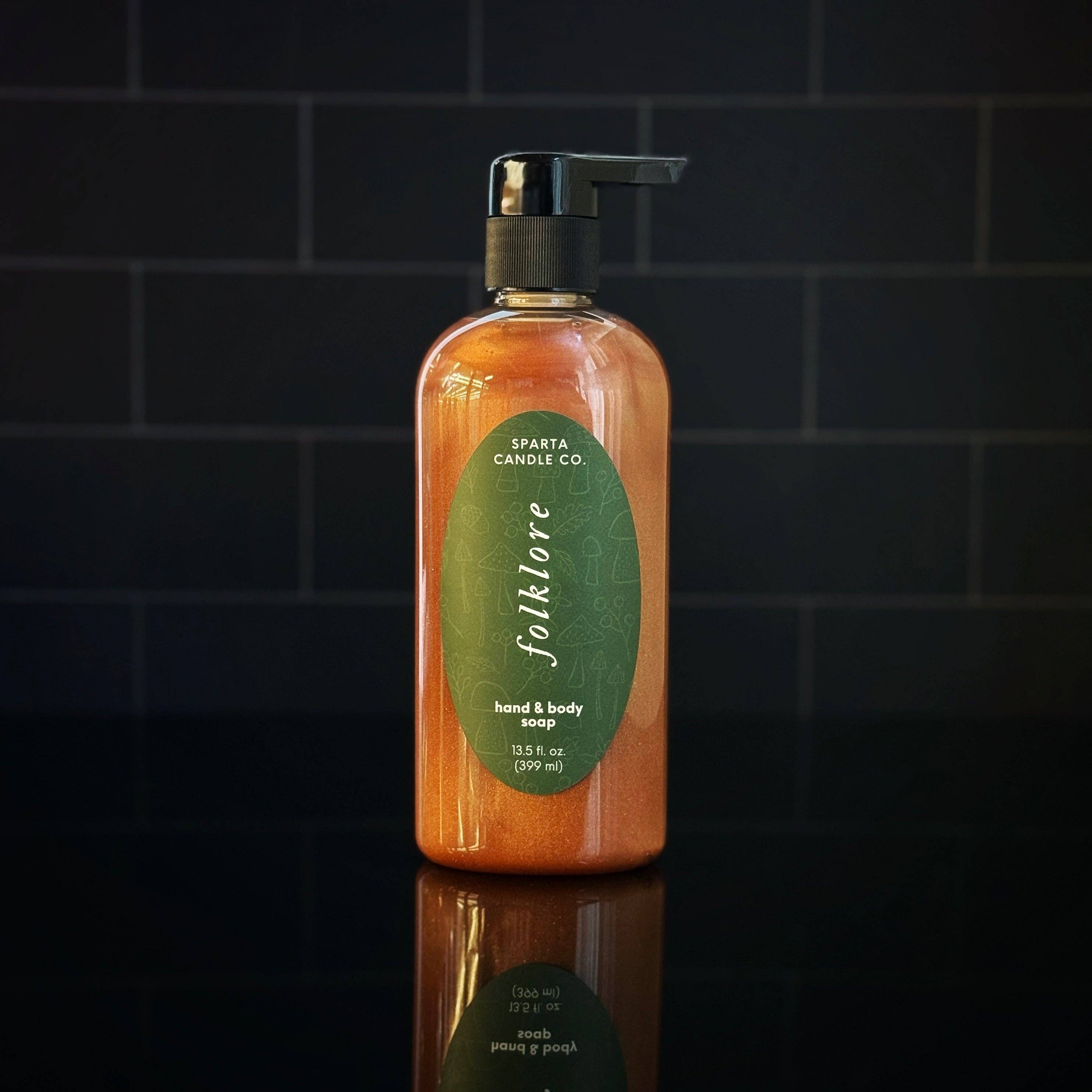 sage - lavender - oakmoss Experience the beauty of our soap in liquid form. This soap is thick, luxurious, shimmery, and builds into the most luscious lather. Use it as hand or body soap - the choice is yours! * Plant-Based * Cruelty-Free * Handcrafted in small batches * Free from parabens, phthalates, & artificial preservatives * Bottle made from recycled plastic * 13.5 fl. oz. (399ml) Ingredients: Purified Water, Coconut Oil, Olive Oil, Oleic Acid, Potassium Hydroxide (for saponification), Glycerin, PEG-150 Pentaerythrityl Tetrastearate & PEG-6 Caprylic/Capric Glycerides, Sodium Laureth-4, Glycol Stearate, Fragrance, Mica (colorant).