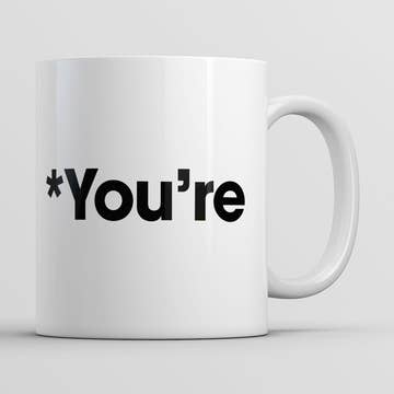 Get it right people. YOUR vs YOU'RE Microwave and dishwasher safe, locally printed mugs. Design will not fade or wash off, printed with a commercial system. 15oz white only. Printed both front & back