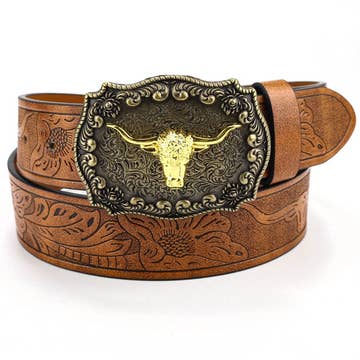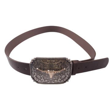 Western-Inspired Buckle w. Ostrich Printed Belt