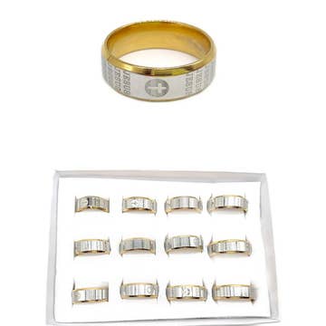 Description & Details The principal symbol of the Christian religion, recalling the Crucifixion of Jesus Christ and the redeeming benefits of his Passion and death. The cross is thus a sign both of Christ himself and of the faith of Christians. * High quality titanium stainless steel * Hypoallergenic, gold plating * 6 mm wide * US size 5 - 12 available