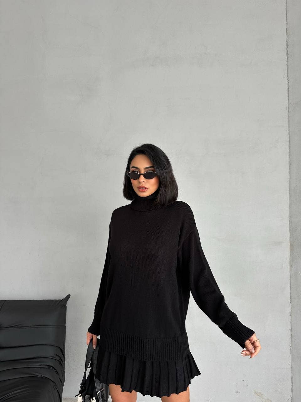 Knit skirtsuit- Pleated mini skirt and oversize sweater