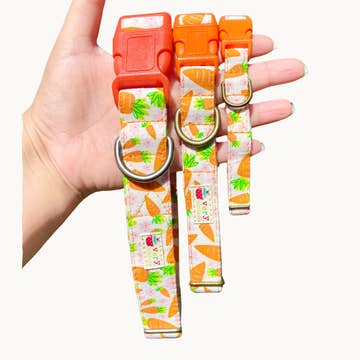 These collars come with a BLACK Plastic Buckle! These collars can be made in 3/4”, 1” and 1.5” width and have Nylon or Polypropylene Webbing inside of the fabric to ensure that they stay durable and strong. All K and M Collar items are handmade-to-order specifically for your pet. Flat Side Release Buckle Collars 3/4, 1" and 1.5" Sizes: XS - 8-11 inches S - 11-15 inches // 1.5" S - 10-14 inches M - 14-18 inches // 1.5" M - 14-20 inches L - 16-22 inches // 1.5" L - 16-25 inches XL - 22-26 inches // 1.5" XL - 17.5-27 inches