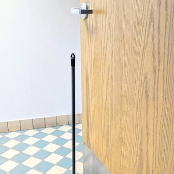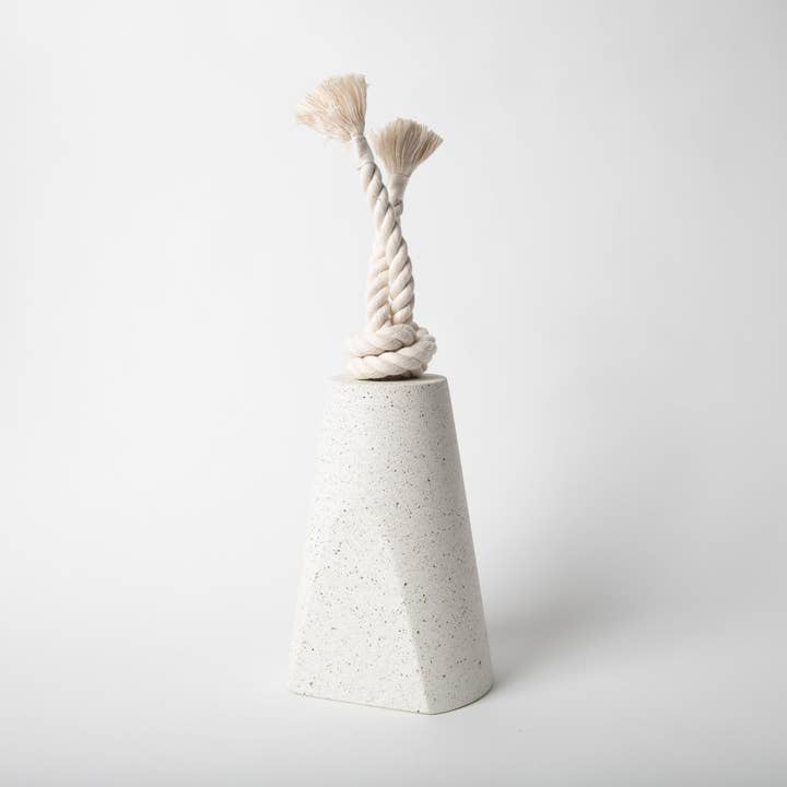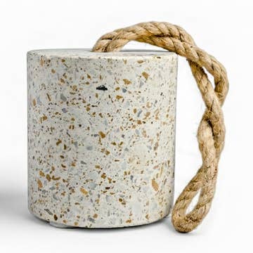 A prettier alternative to the standard issue rubber door stop. Material: concrete & recycled glass w/ cotton rope Dimensions: 5” w x 4.375” d x 15” h Weight: 5.5 lb Intended for standard at-home or interior doors. Not intended for external, industrial-weight doors.