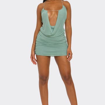 Plunge Neck Thigh Split Dress