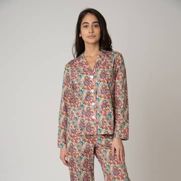 Our beautiful cotton pyjama sets have been consistently popular with customers in-store. They're gorgeously soft to wear, and 100% cotton, meaning they work in all seasons. The sets come in their own matching envelope-style cotton bag, making them a gorgeous gift option. Waistbands are drawstring and elasticated, and the top has a loose, untailored fit for maximum comfort. The sets have pockets (of course!) as well as a cute breast pocket on the top. SIZE GUIDE XS = UK 6-8 S = UK 8-10 M = UK 10-12 L = UK 12-14 XL = UK 14-16 XXL = UK 16-18