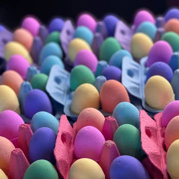 Set of 6 Easter Egg Bath Bombs. Each egg is fragranced as follows: Yellow: Citrus Splash Orange: Mango Tango Pink: Bubblegum Green: Monkey Farts Blue: Cotton Candy Purple: Grape Each set is wrapped in a bow and includes a gift tag. Bows will have Easter theme however, they come in various colors and styles.