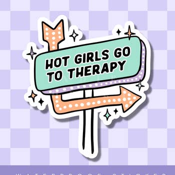 Get your therapy fix and show off your sass with the Hot Girls Go to Therapy sticker! This round sticker is perfect for adding a touch of humor to your laptop, water bottle, or notebook. Don't be afraid to show off your quirky side with this playful sticker! Your laptop. Your water bottle. Your car. If they don't stand for something, they'll fall for anything. Or is that people? Hm... This die cut sticker features my signature lettering and design. Made from a durable vinyl with a laminate that protects your stickers from scratching, rain and sunlight. Waterproof! Approximately 3 in x 3 in Please note:  Accessories not included. But they look really cute, don't they?